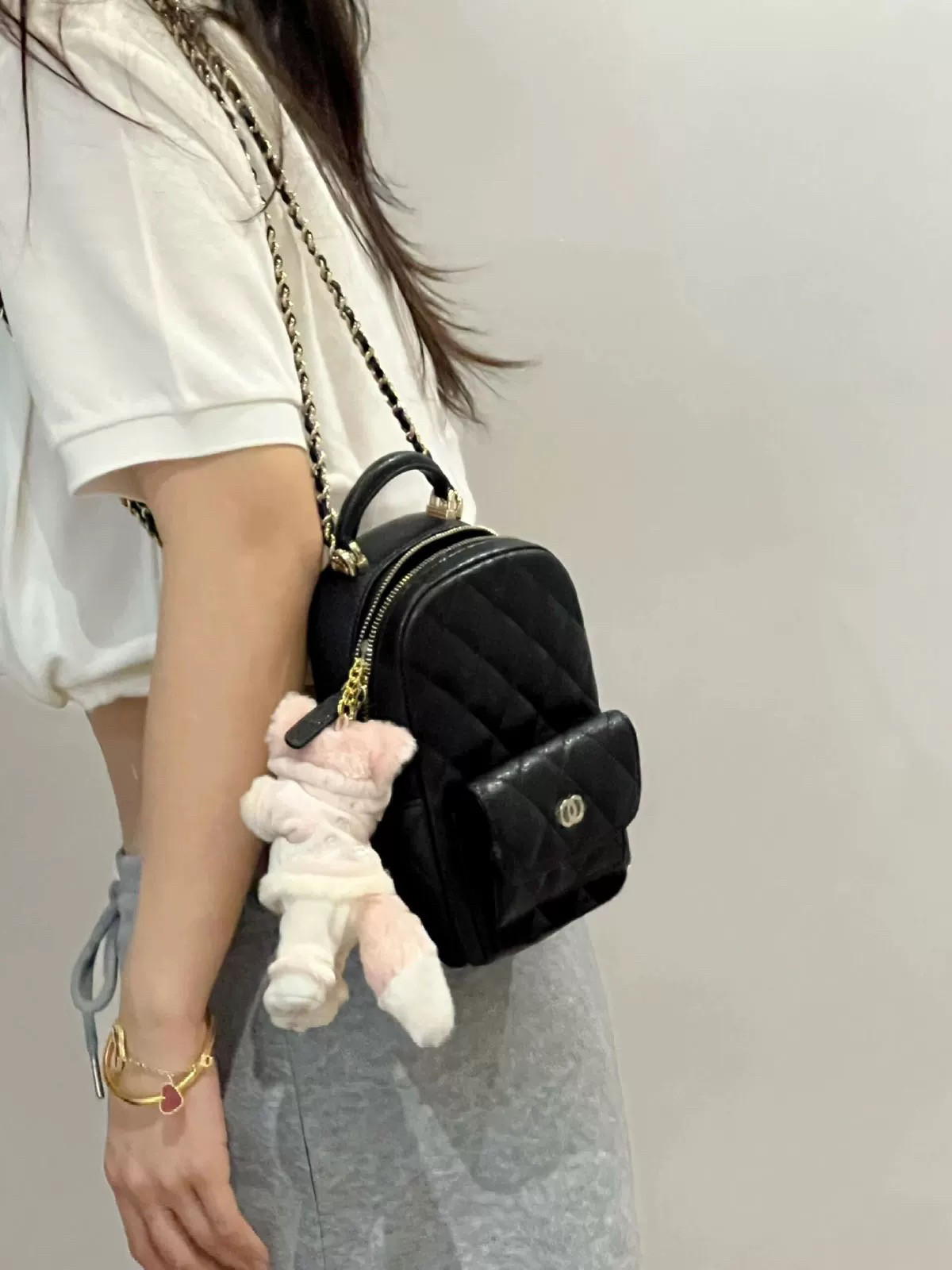 25P新款小香风荔枝纹牛皮mini双肩包高级感菱格链条包时尚小背包