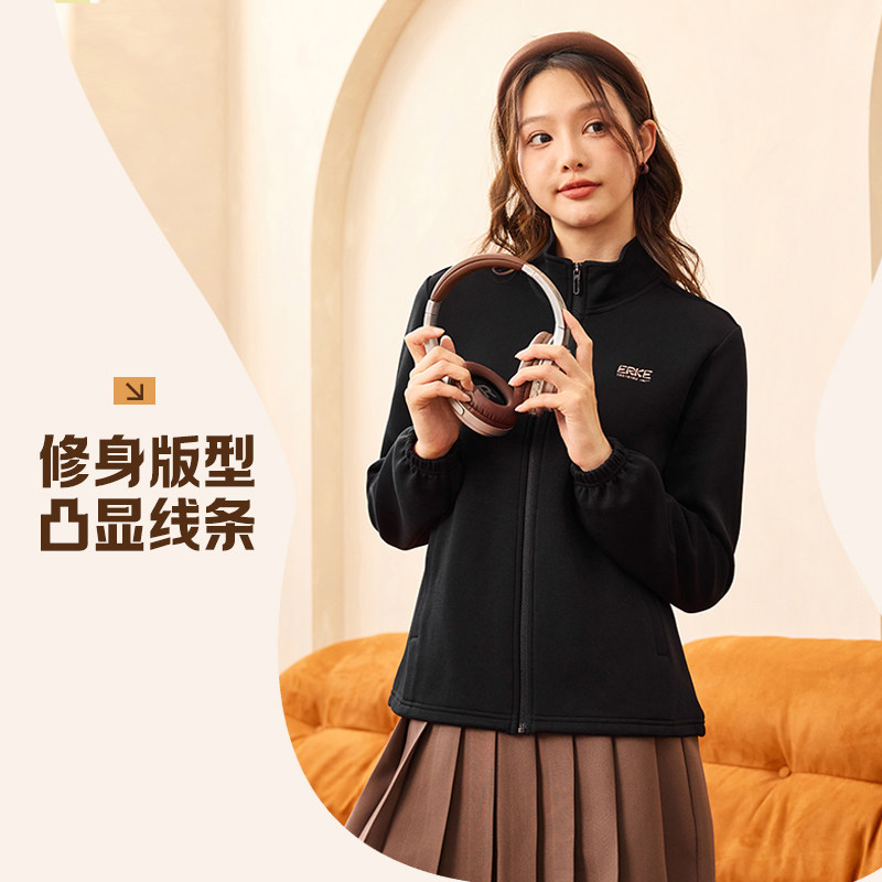 鸿星尔克女装外套2026秋新款针织小个子立领休闲运动服开衫卫衣