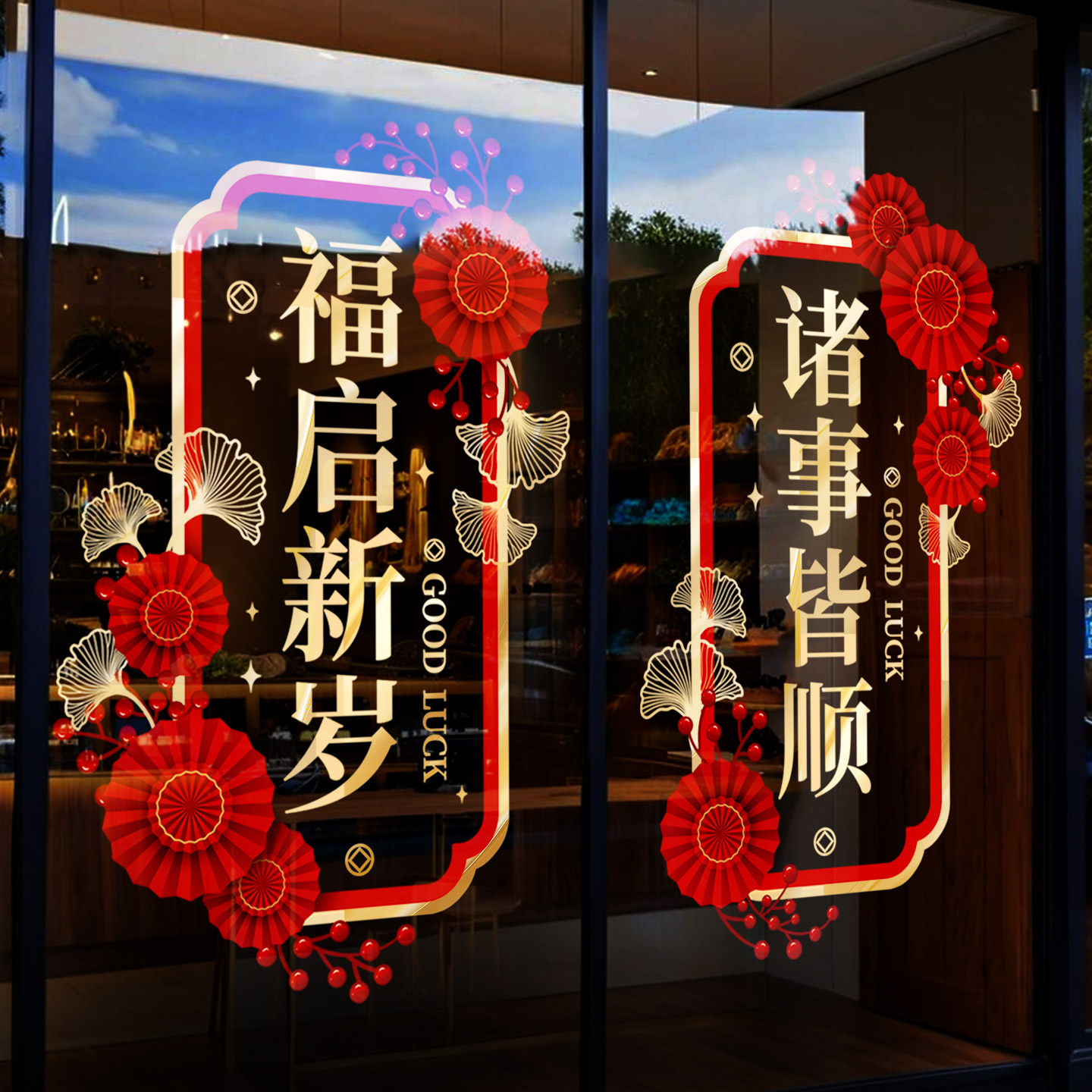 新年氛围布置静电玻璃贴纸门贴窗花贴纸春节马年场景窗贴装饰酒店
