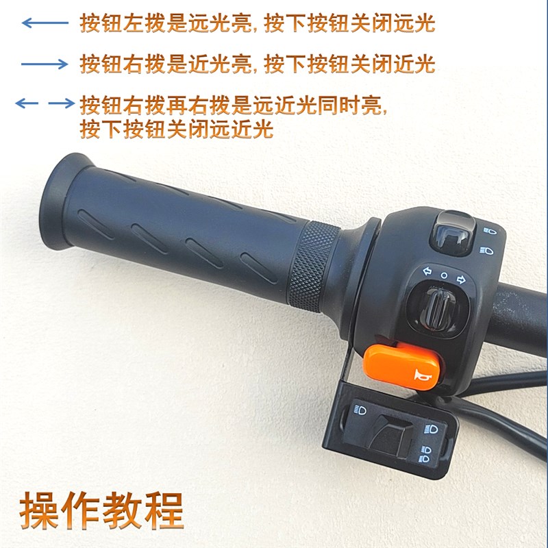 电动车摩托车加改装变光远近光射灯二合一大灯双功能车把断电开关