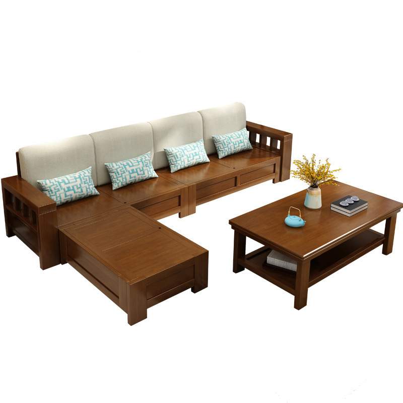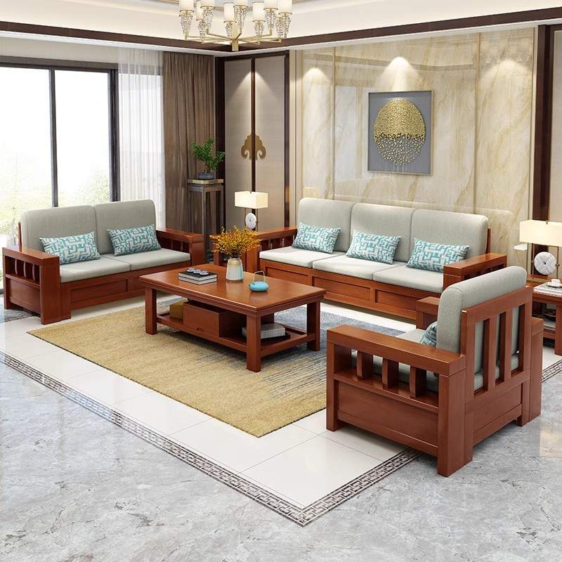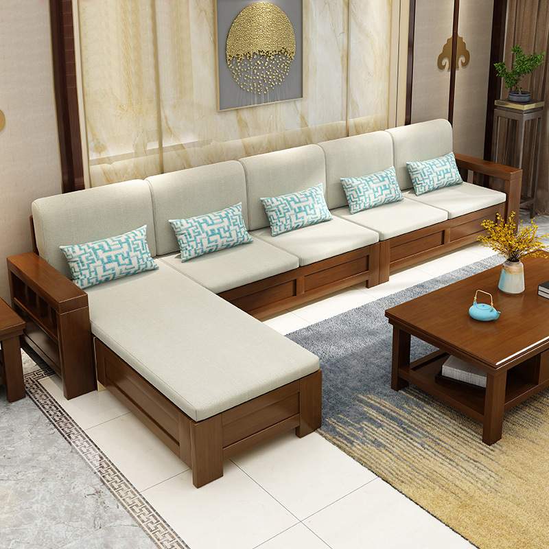 新中式实木沙发组合布艺沙发现代储物冬夏两用小户型木质客厅家具