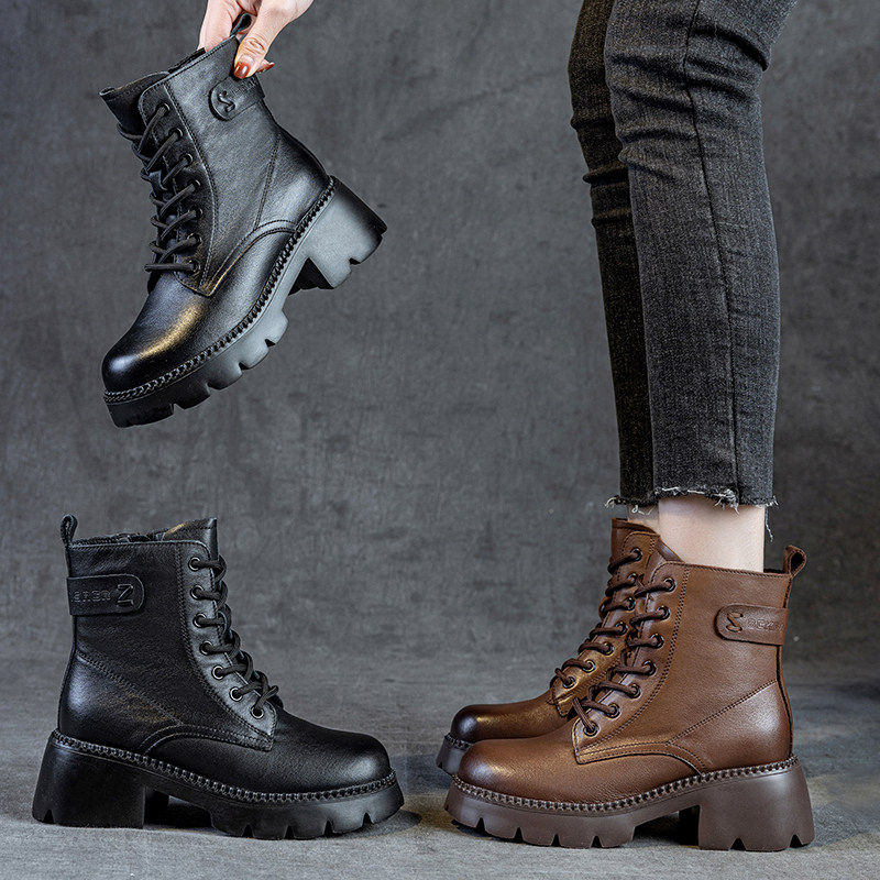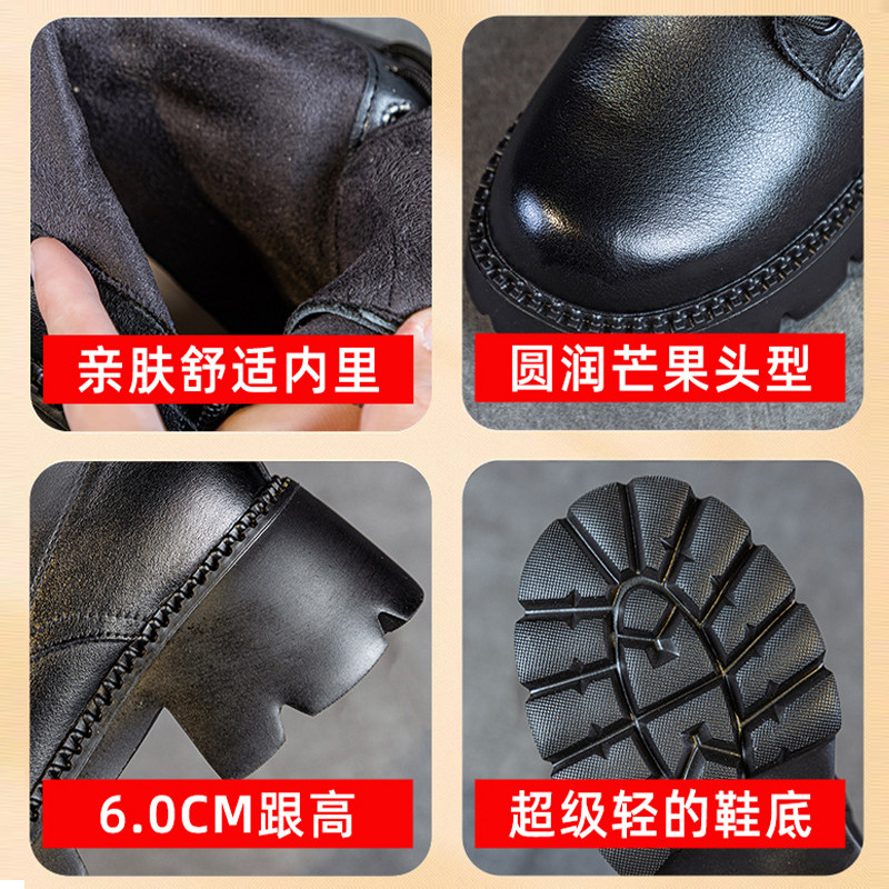 厚底马丁靴女2025新款秋冬季雪地靴英伦风高跟小个子真皮加绒短靴