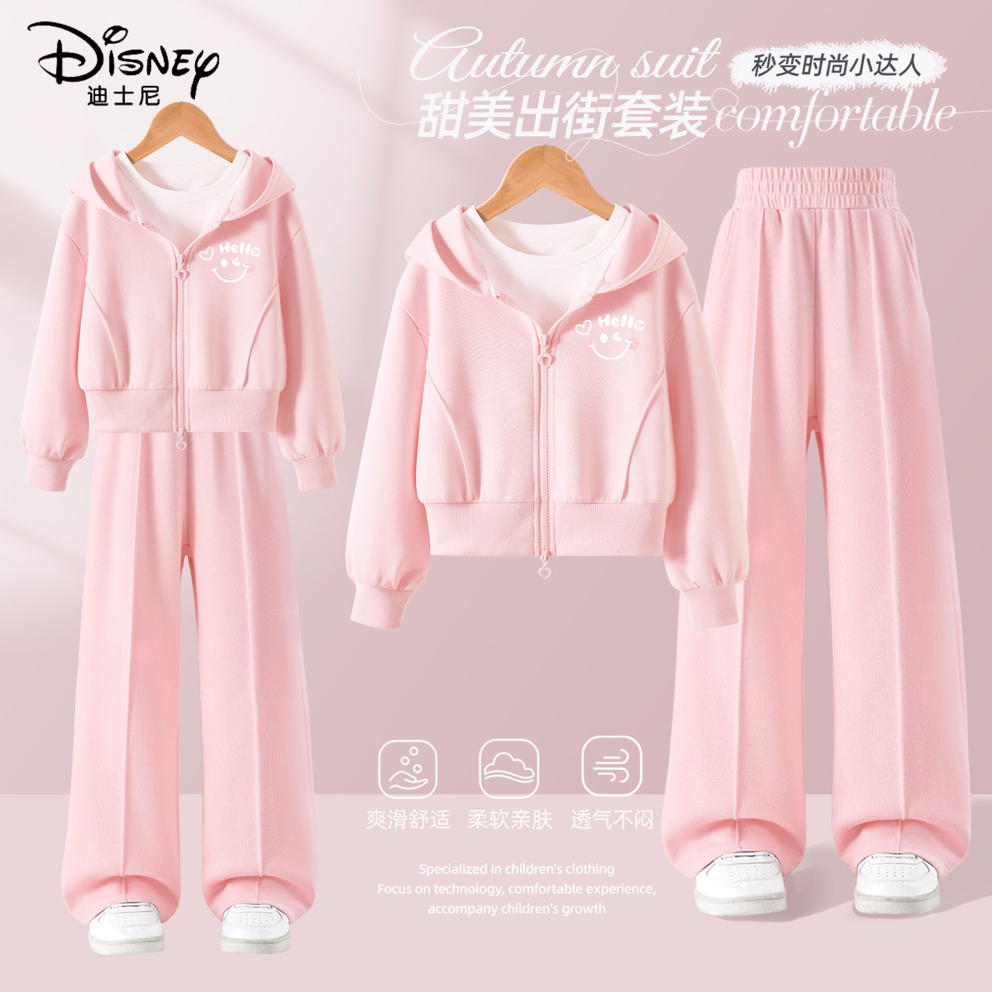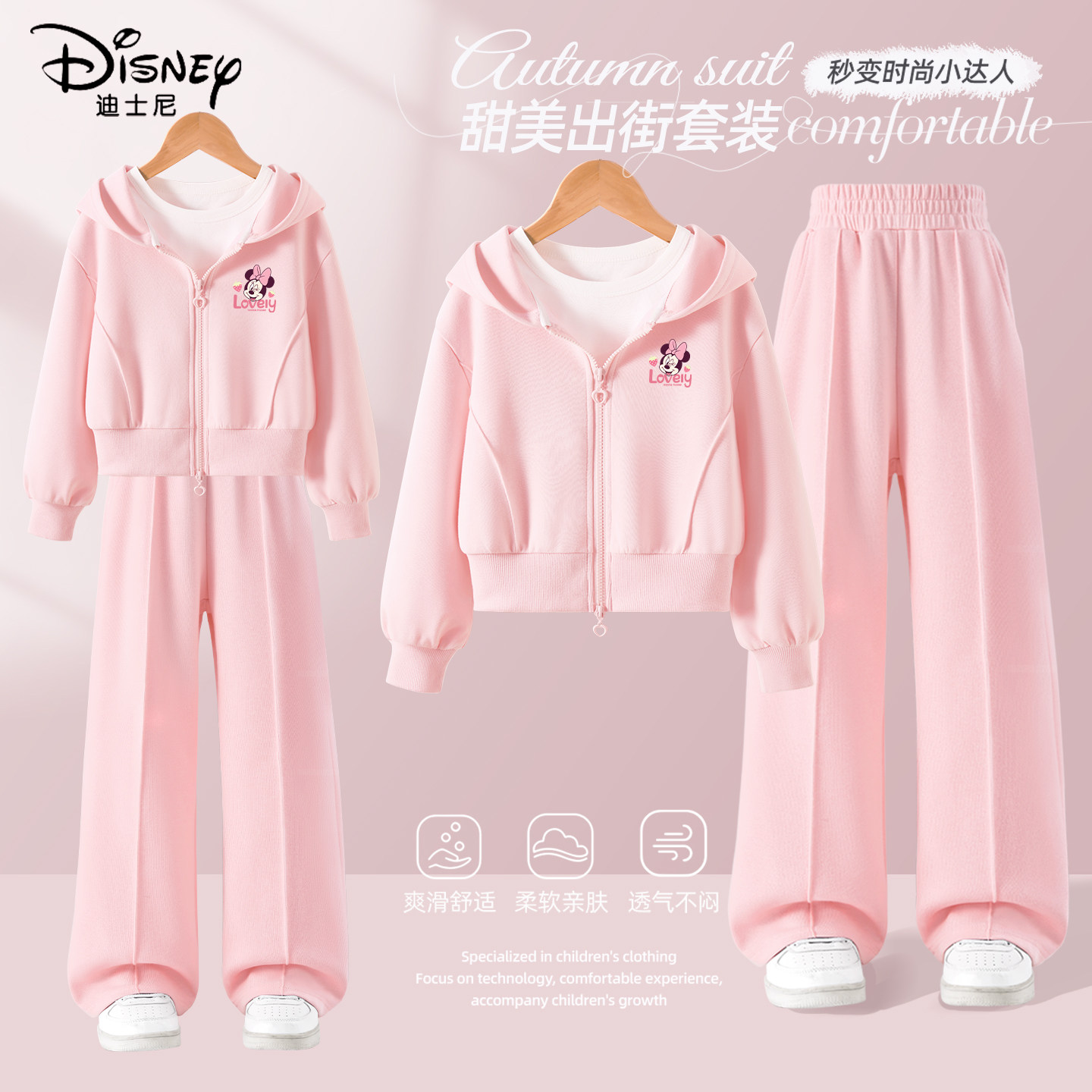 迪士尼女童套装春秋款2026新款女孩衣服春季休闲运动流行儿童春装