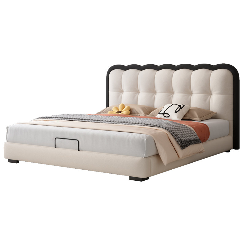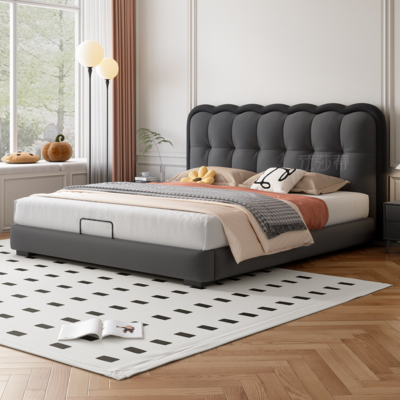 法莎蒂猫抓布双人床主卧室现代简约婚床高端奶油风泡芙软包涟漪床