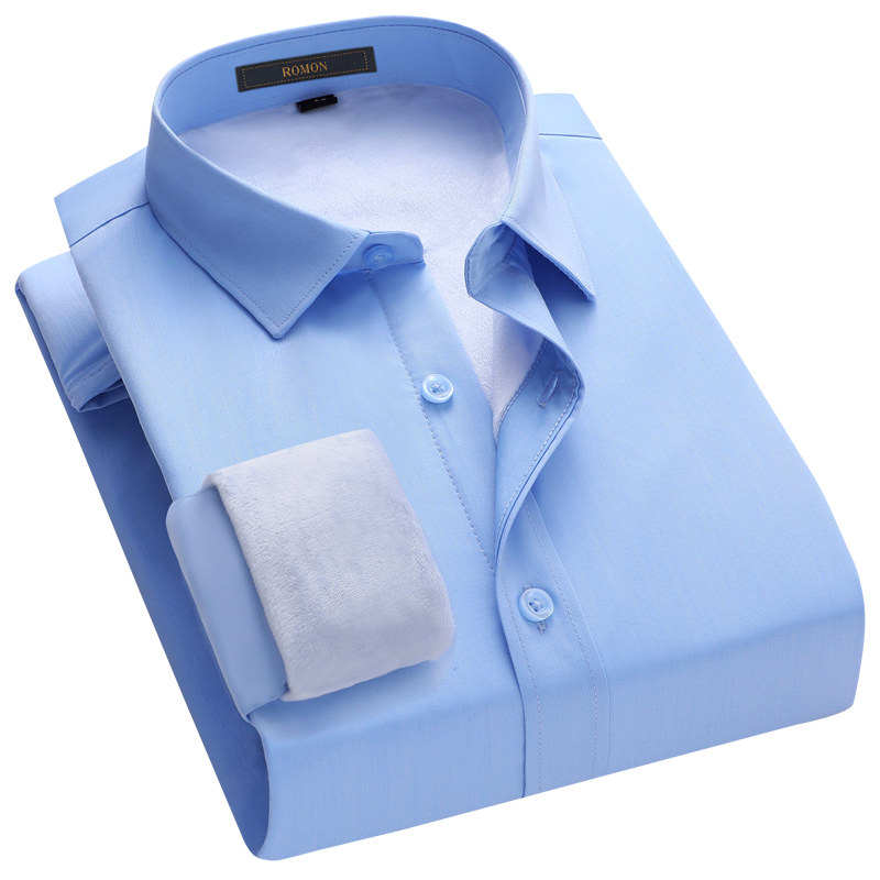 罗蒙长袖加绒衬衫男士2025新款冬季商务职业正装加厚西装衬衣男款