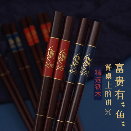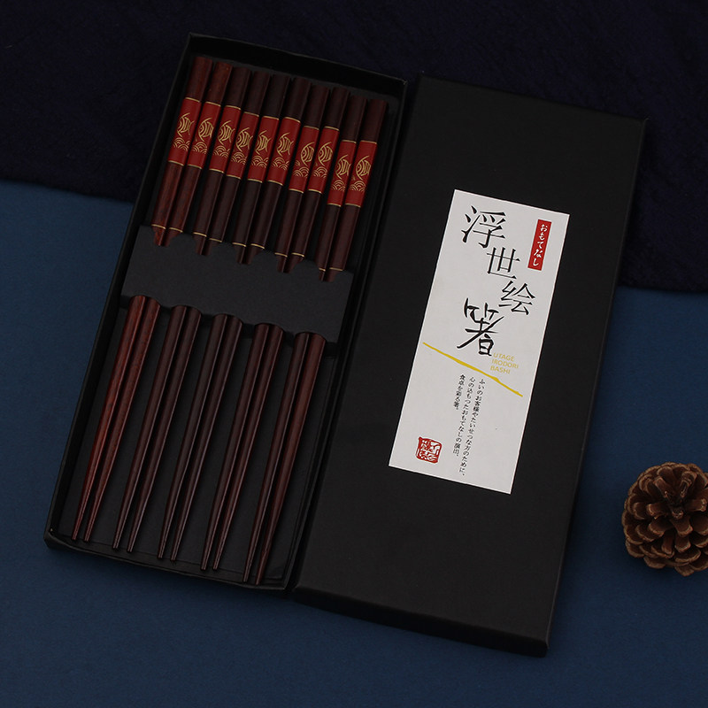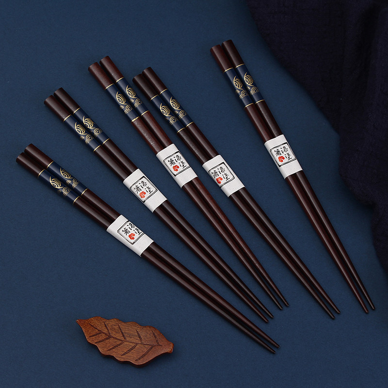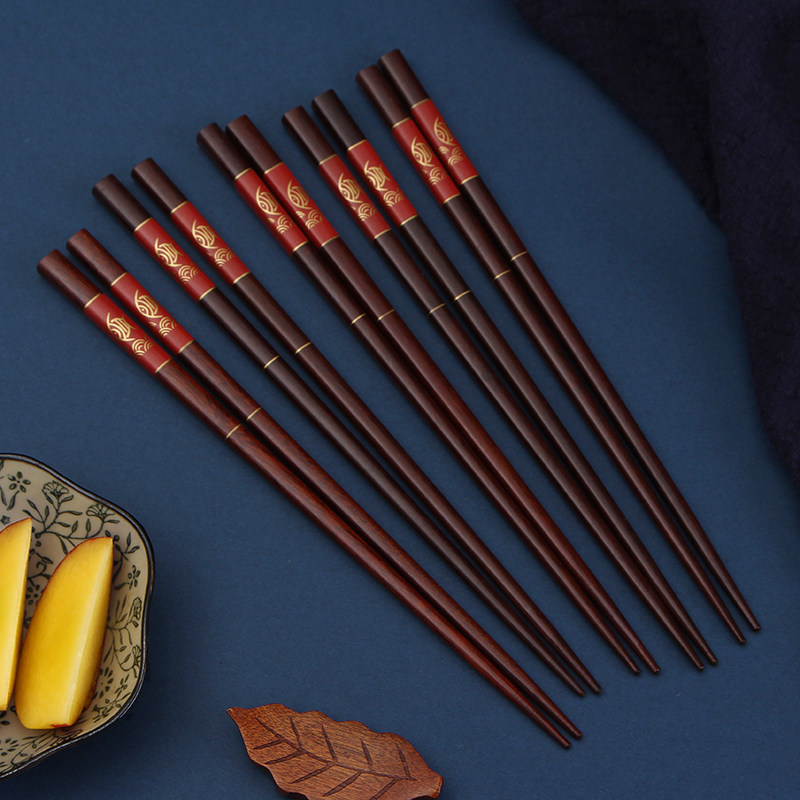 红檀木筷子家用 实木5-10双家庭装 高档成人中式天然块子送礼方形