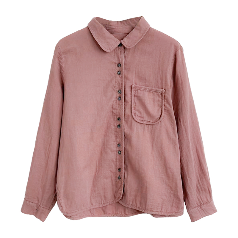 2024新款春秋新款衬衫女纯色宽松拼接原创文艺百搭复古通勤开衫女