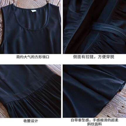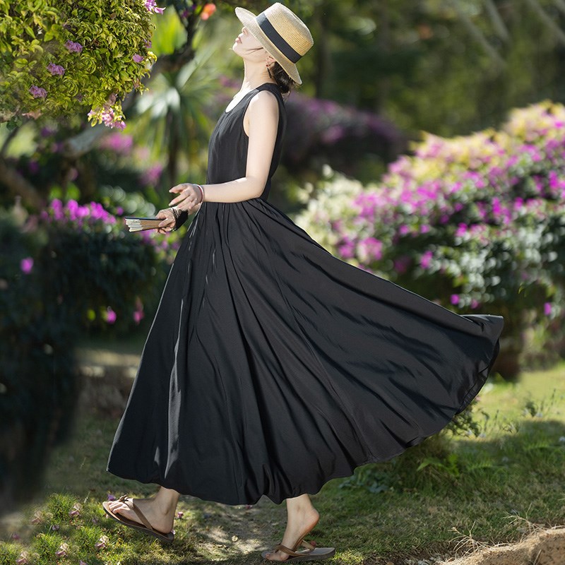 【墨染浮浮】文艺方领黑色背心裙女收腰显瘦长裙夏季大摆背带裙子