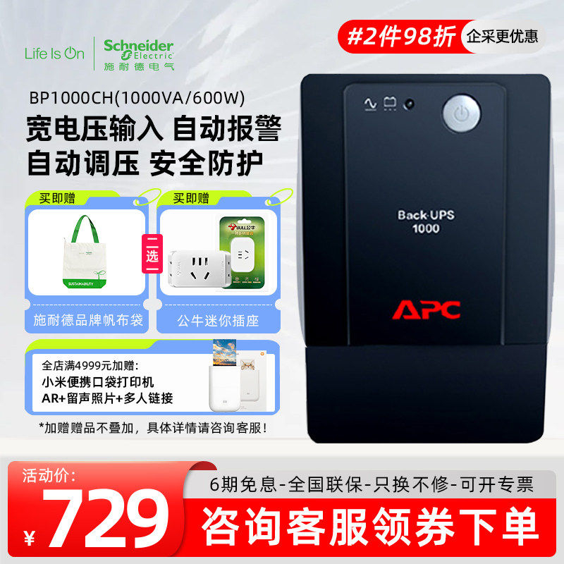 APC施耐德UPS不间断电源BP1000CH电脑路由器防停电备用后备式电池