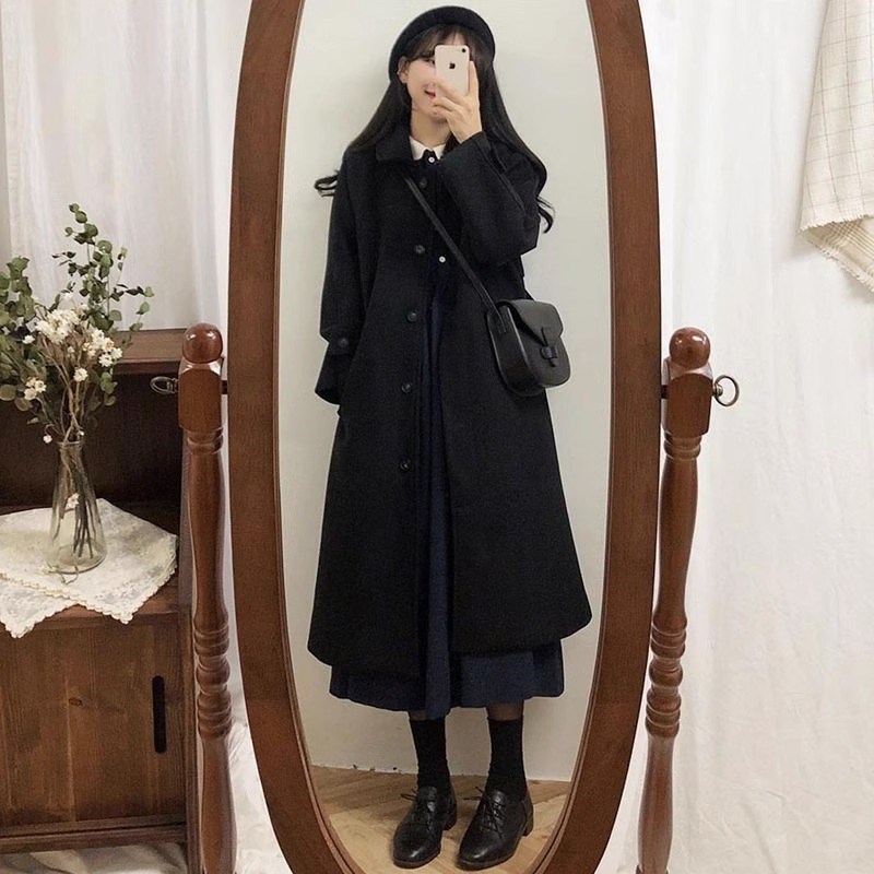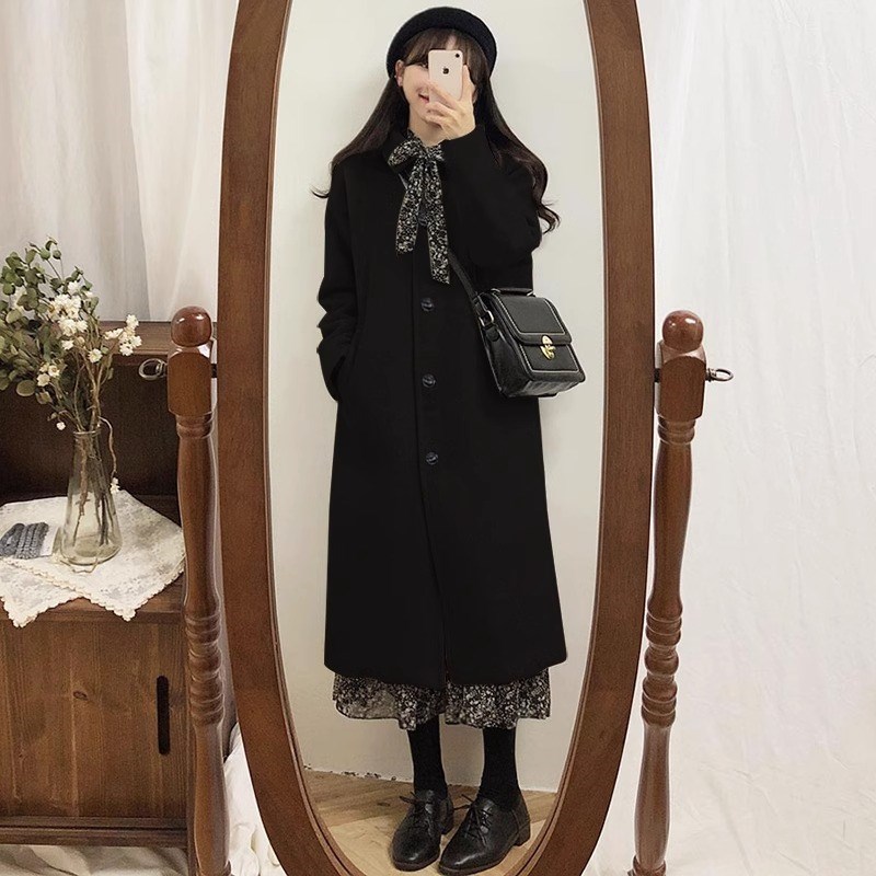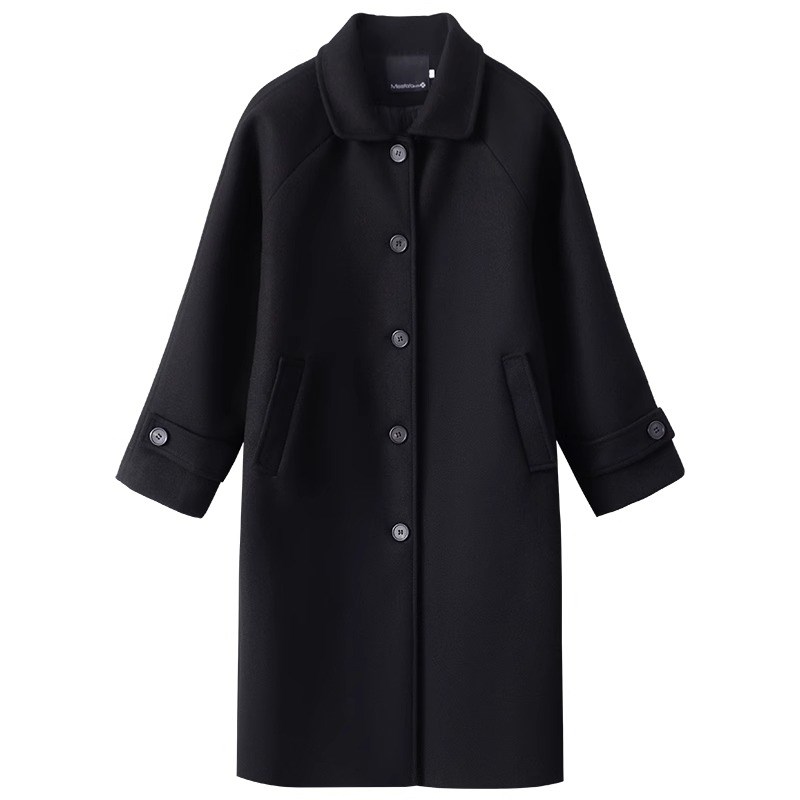 现货速发黑色双面大衣202新款秋冬季今年流行小个子中长款毛呢外