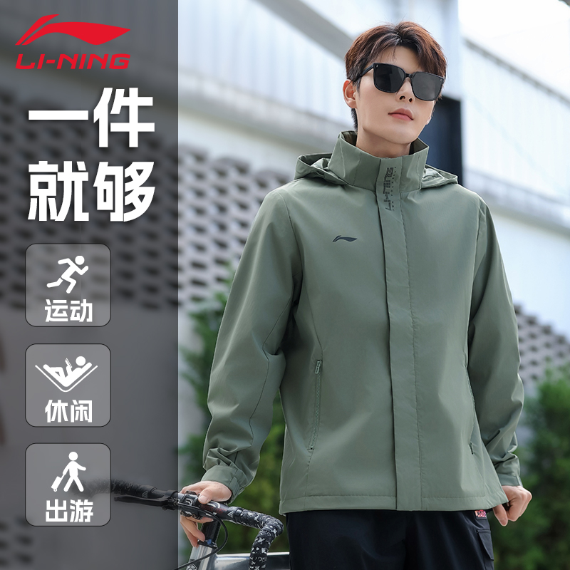 李宁风衣外套男款春秋季防风舒适户外徒步休闲软壳运动风衣夹克服