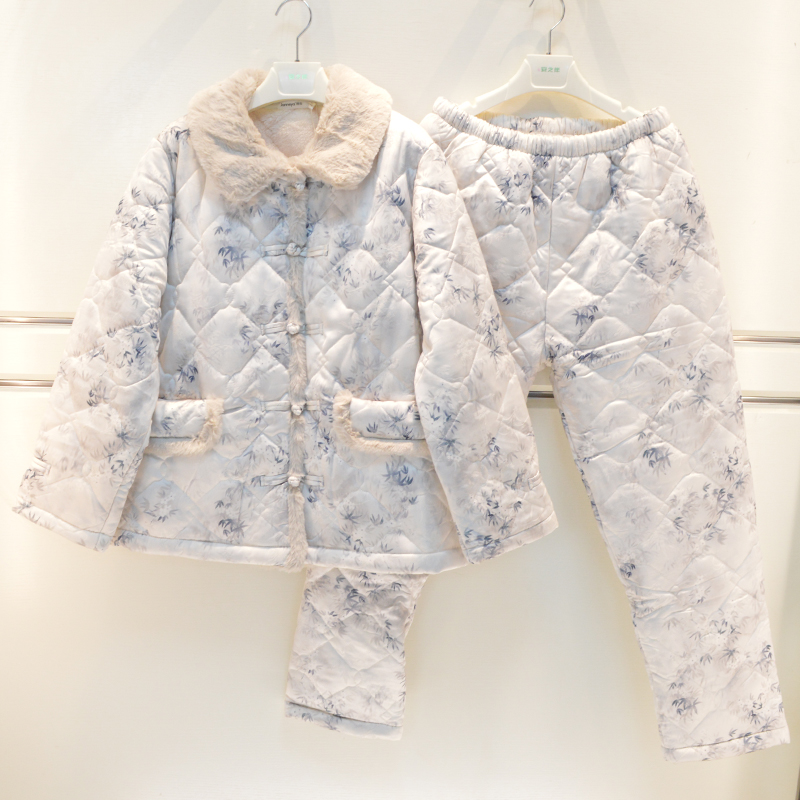 特价精雅睡衣冬季女士三层加厚夹棉保暖气质淑女棉袄时尚家居服