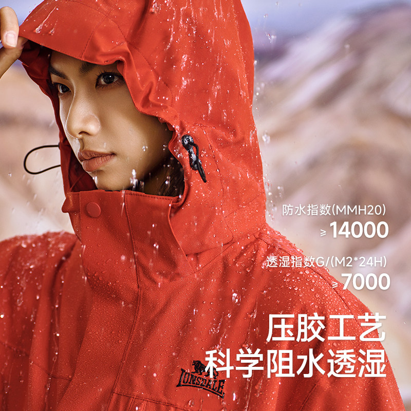 【朱雀红羽绒冲锋衣】龙狮戴尔冲锋衣户外三合一女防风防水外套男