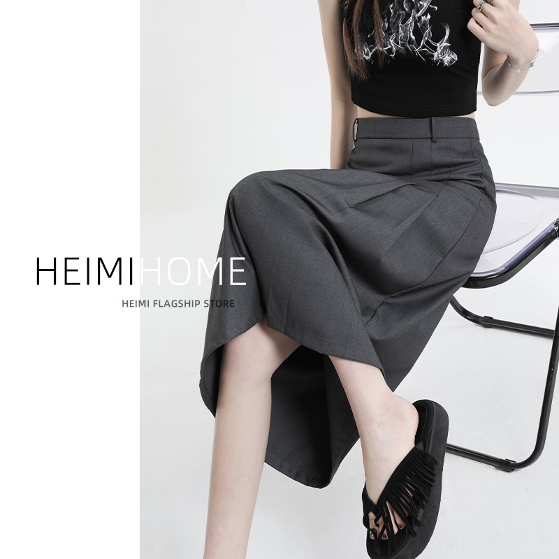 灰色西装半身裙女春夏秋高腰中长款直筒格子裙小个子A字百褶裙潮