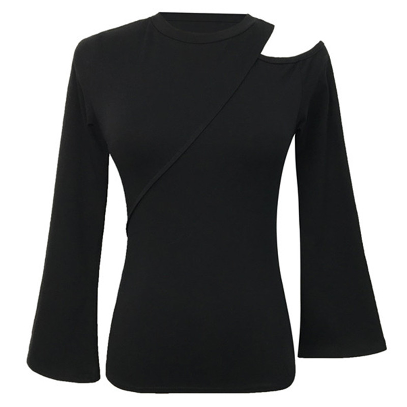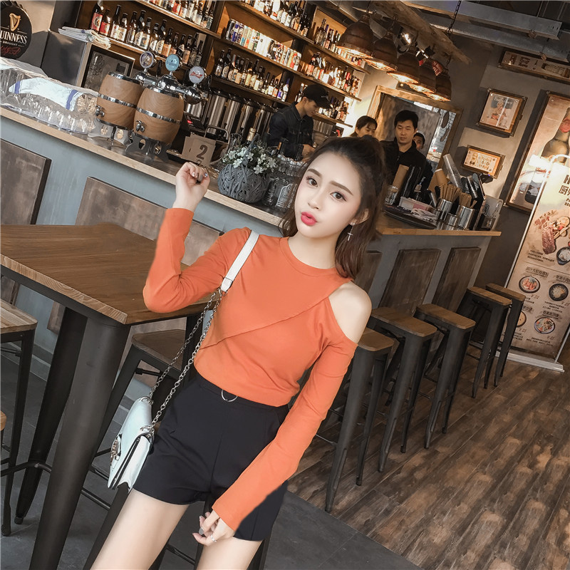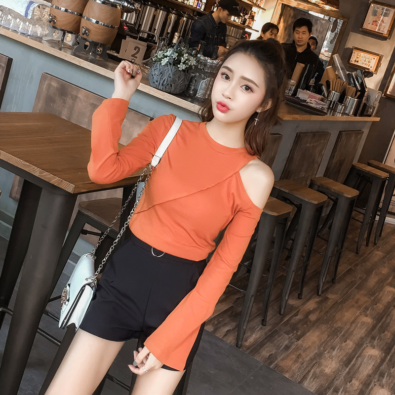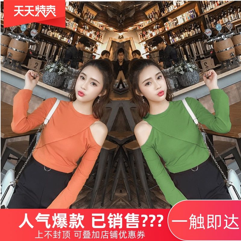 长袖t恤女打底衫内搭显瘦露肩黑T纯欲上衣设计感小众减龄气质小衫