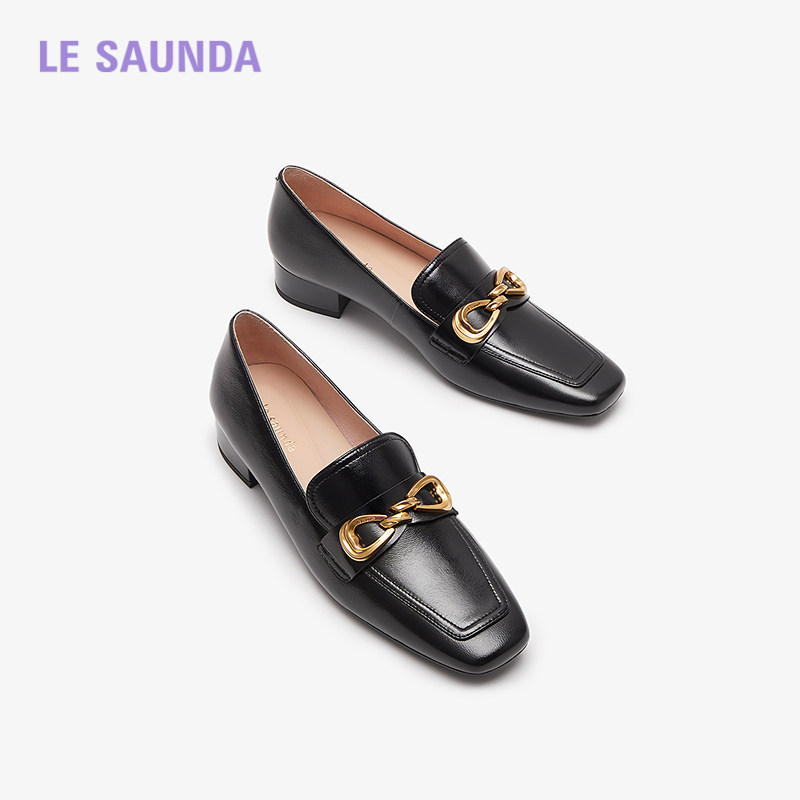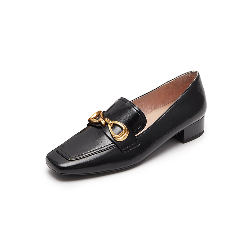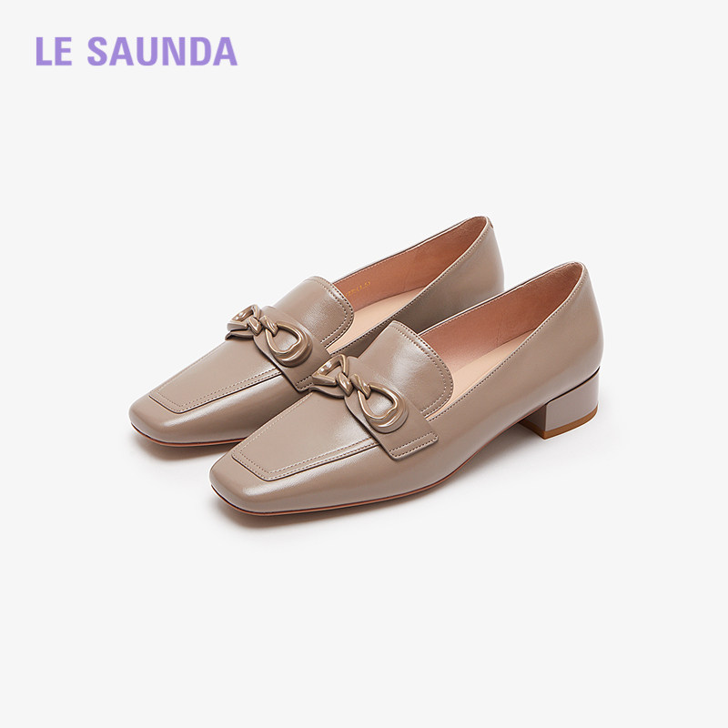莱尔斯丹春夏新款商场同款英伦复古方头饰扣低跟乐福单鞋女23705