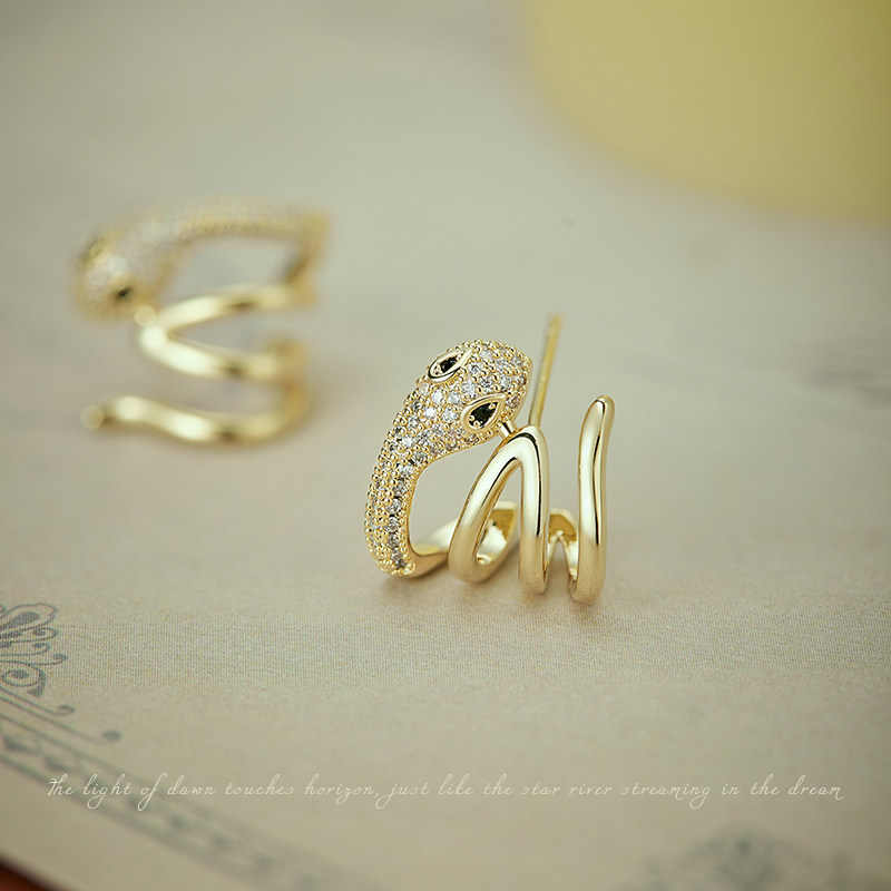 蛇形微镶精致锆石耳钉女款2025新款轻奢耳环气质高级感灵蛇耳饰