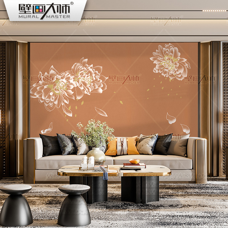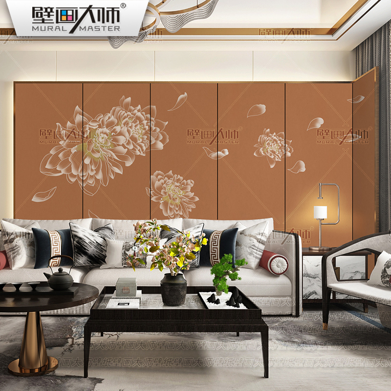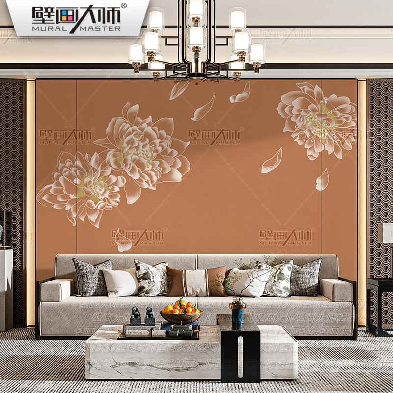 新款中式壁纸现代l简约客厅花卉壁布电视背景墙布影视墙纸卧室壁