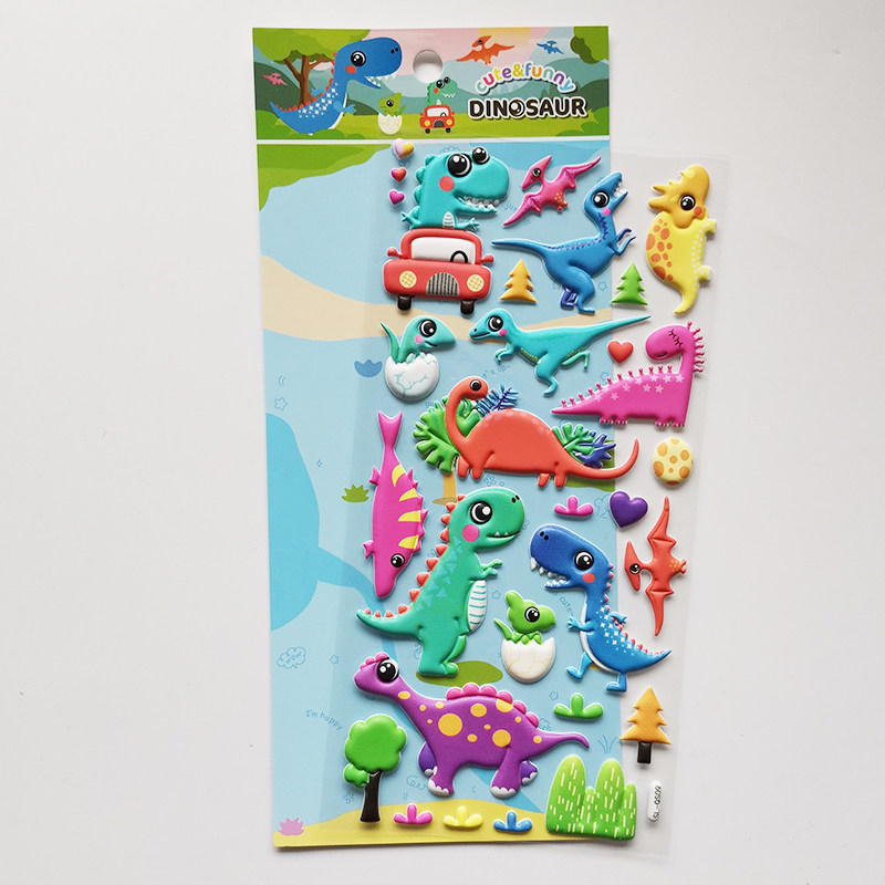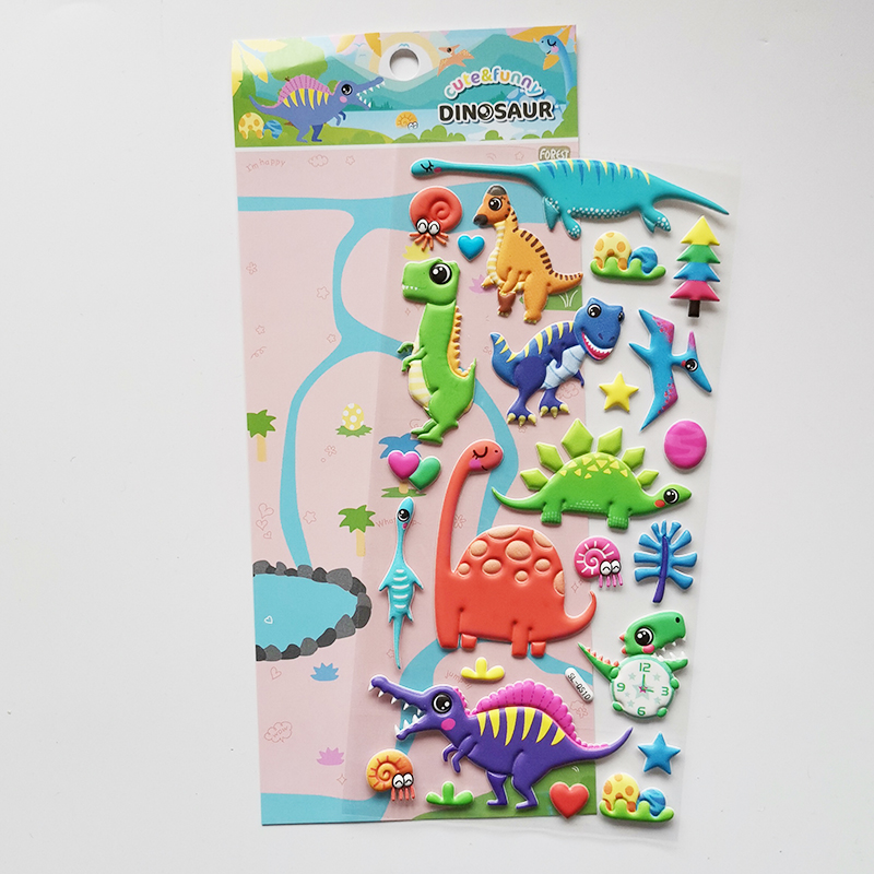 可爱恐龙贴纸防水3d儿童奖励贴画男孩霸王龙粘贴纸动物泡泡帖男生