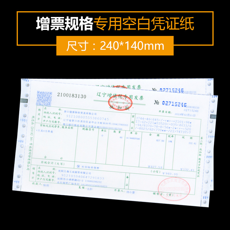 通用空白凭证增值税专用电子发票打印纸240*140/230*110/210*120/210*140/265*125财务会计用品记账电脑凭证