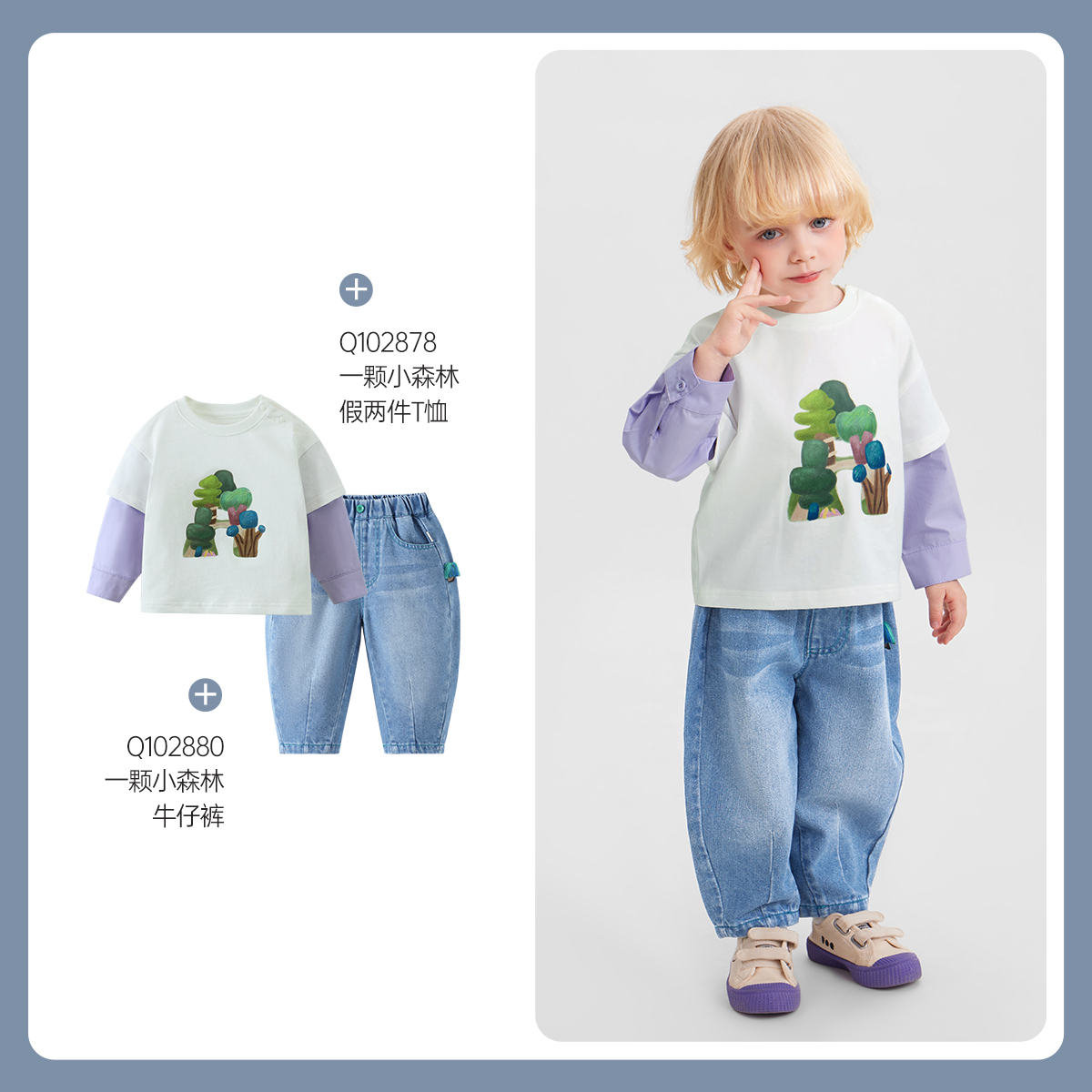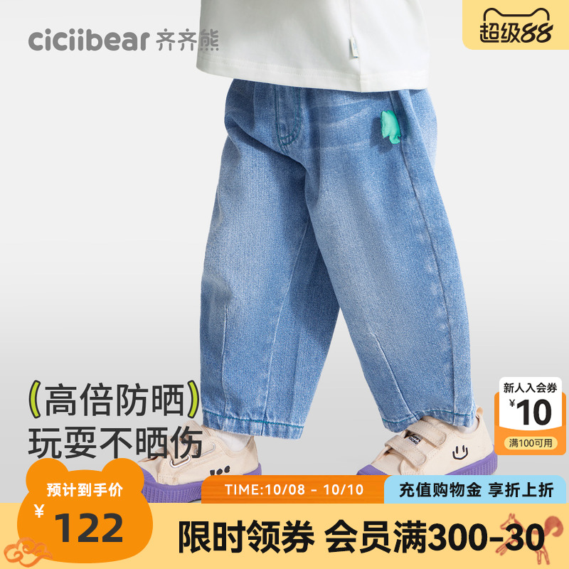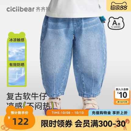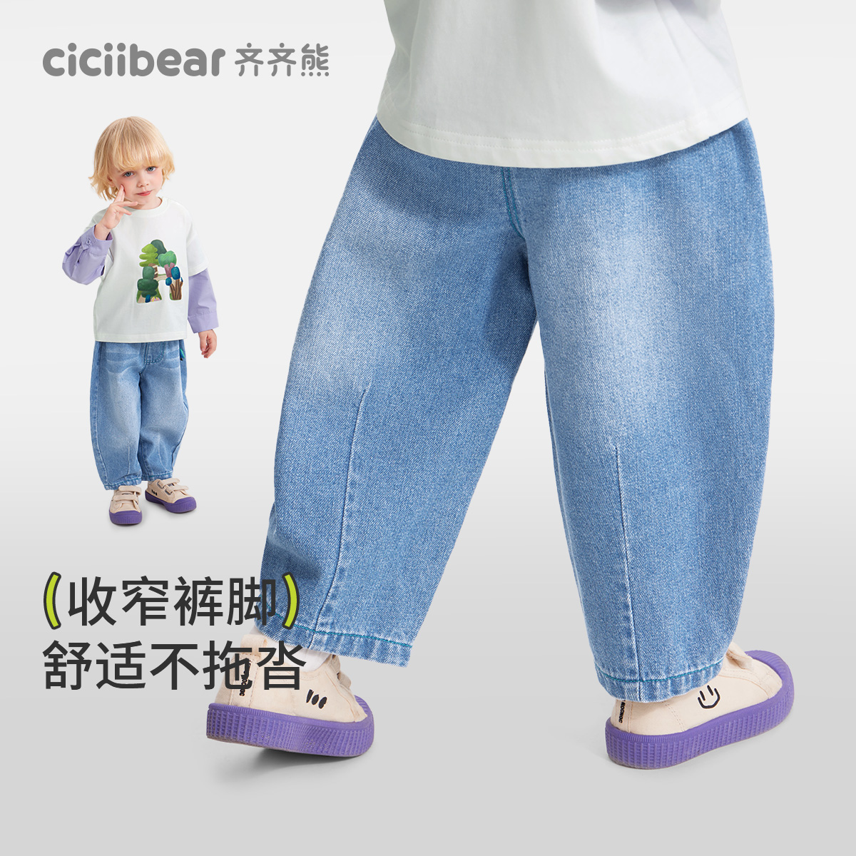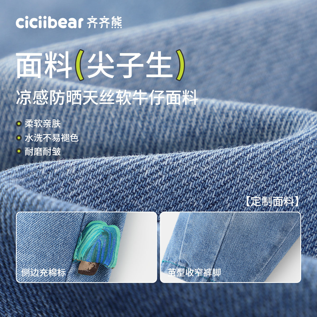[防晒凉感]齐齐熊宝宝软牛仔裤春秋款男童裤子2025新款长裤儿童女