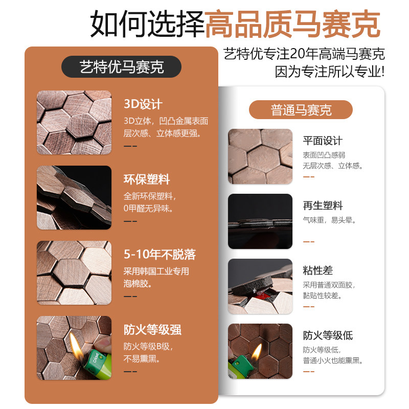 金属3D立体马赛克瓷砖自粘贴背胶