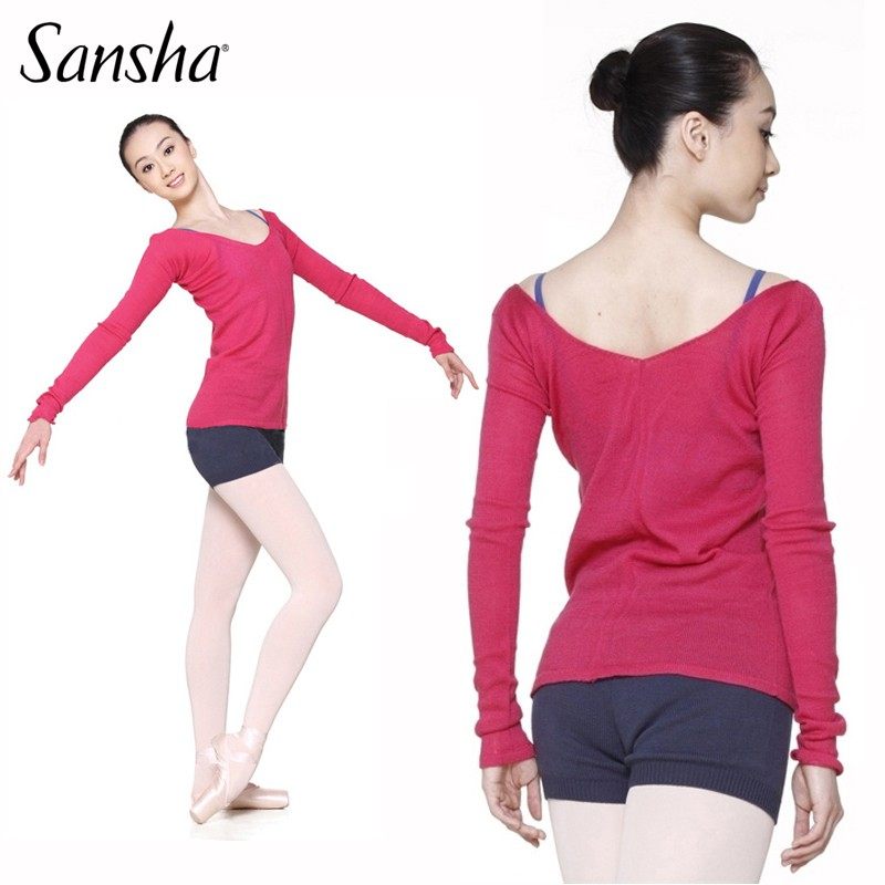 三沙Sansha芭蕾舞练功服冬季成人舞蹈服针织衫双V领长袖保暖毛衣