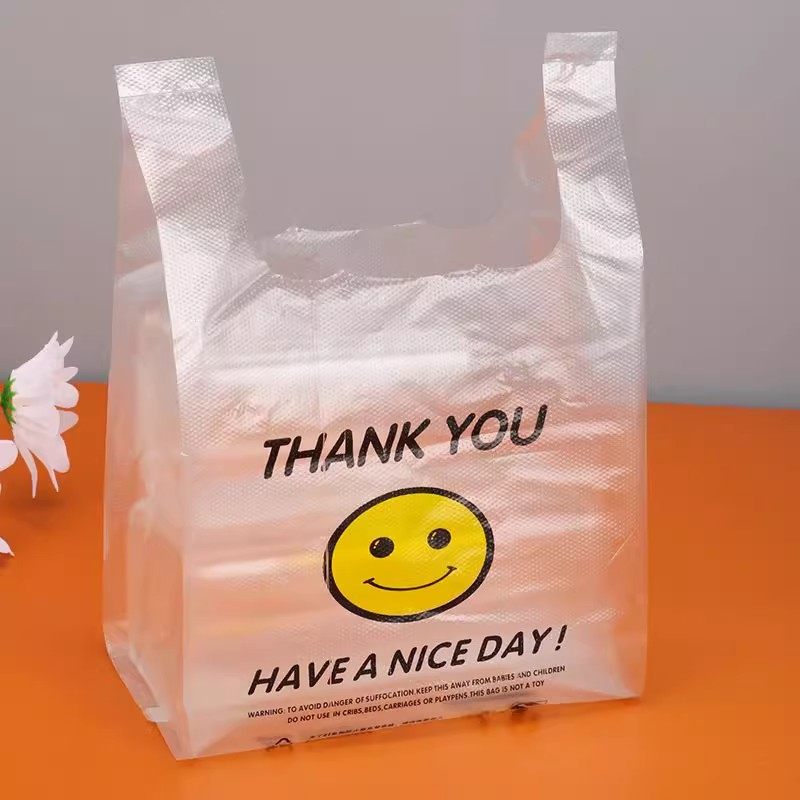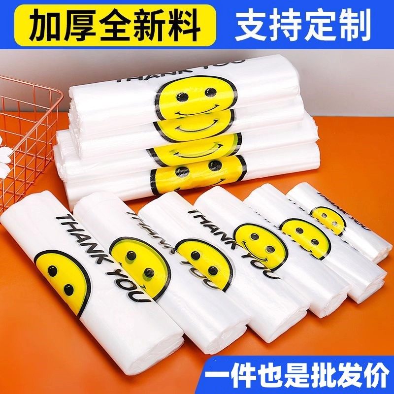 透明笑脸塑料袋食品袋购物袋外卖打包袋手提方便袋马甲背心水果袋