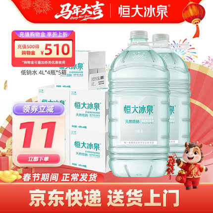 恒大冰泉低钠长白山天然矿泉水非纯净水饮用水4L*4瓶*5泡茶大桶水