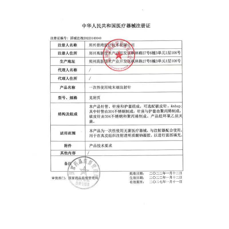 康普沃械三钝针一次性医用顿针21/22/27/23/25/30g侧面带刻度
