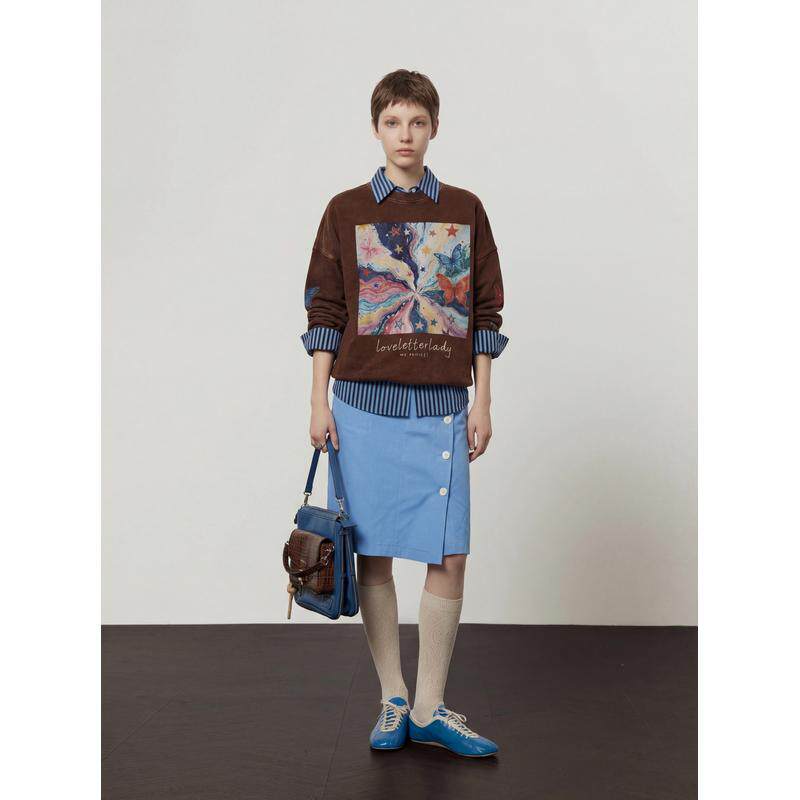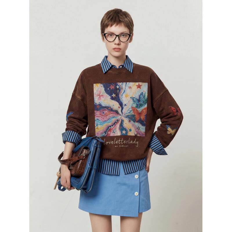 周里物出品「雾焰」蜡染啡色卫衣女2026春季新款宽松休闲印花上衣