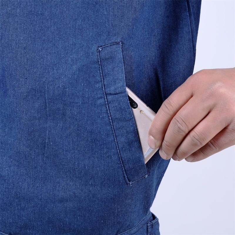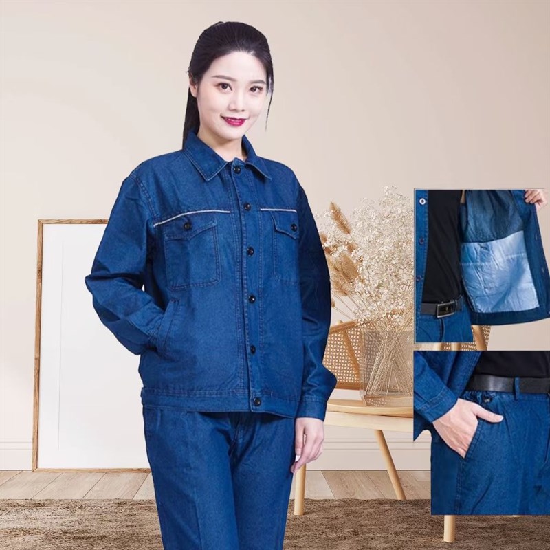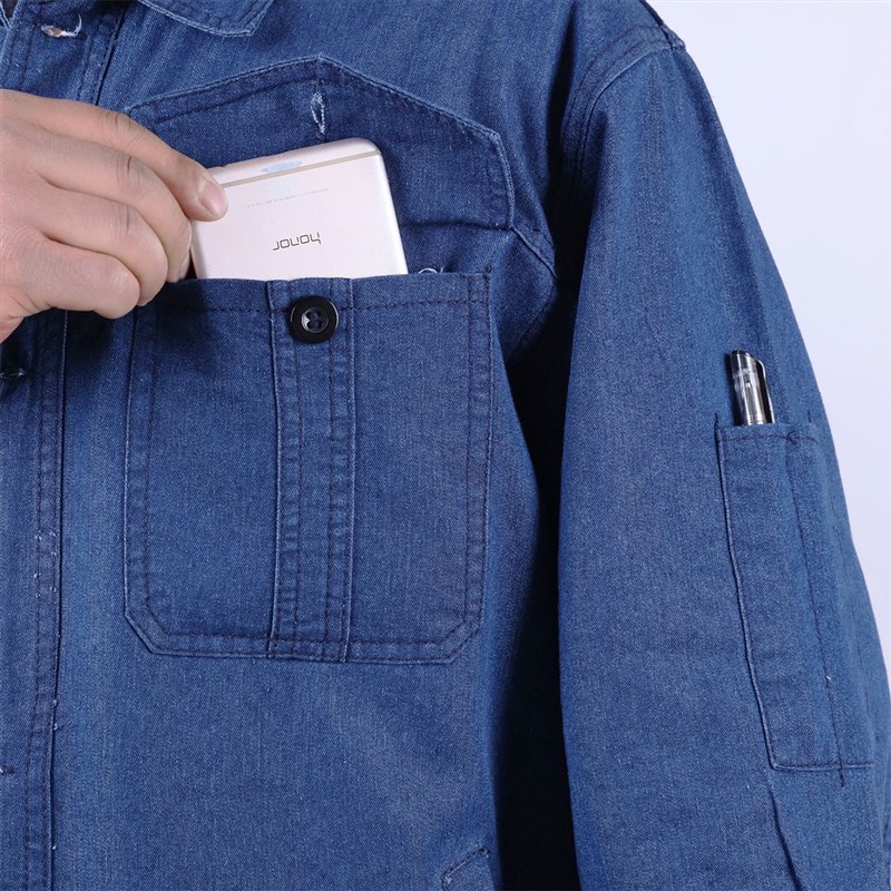 夏季薄款涤棉牛仔工作服套装男电工服劳保服工地劳动电焊服反光条