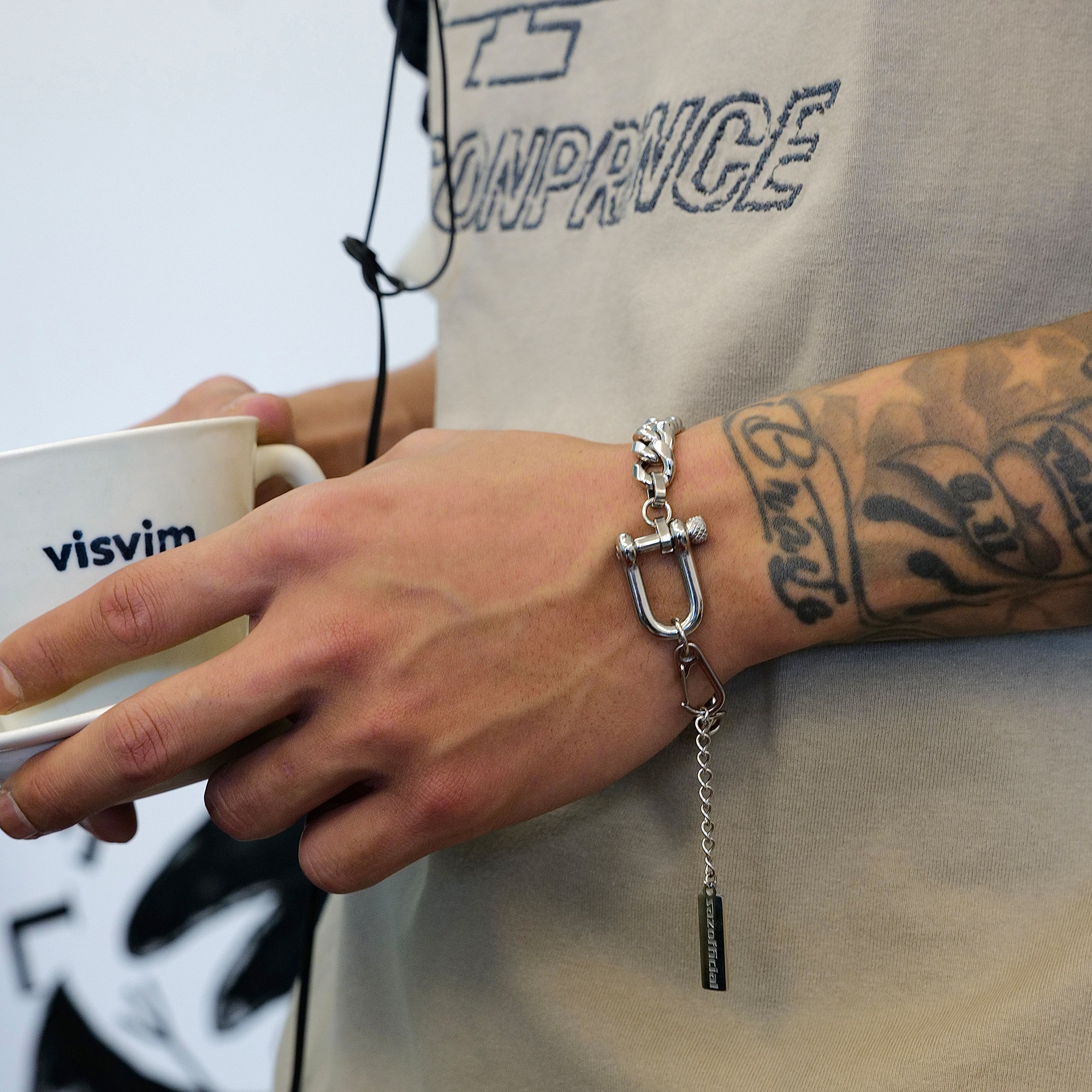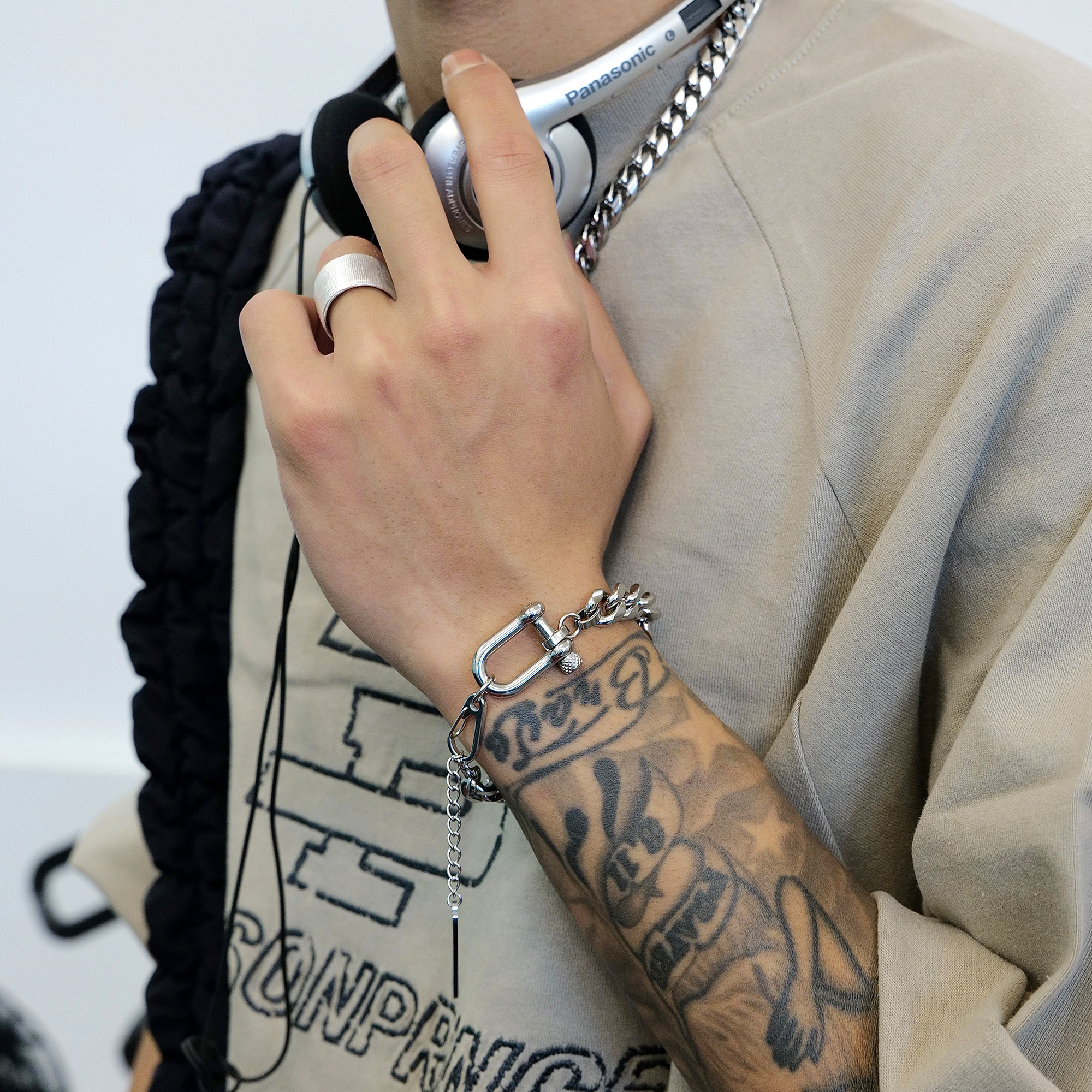 SAZ 潮流小众设计高级感马蹄扣古巴银色钛钢男女手链ins风手饰品