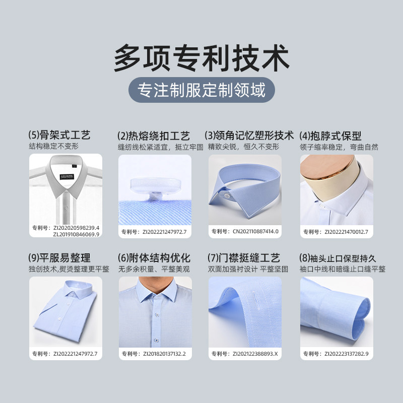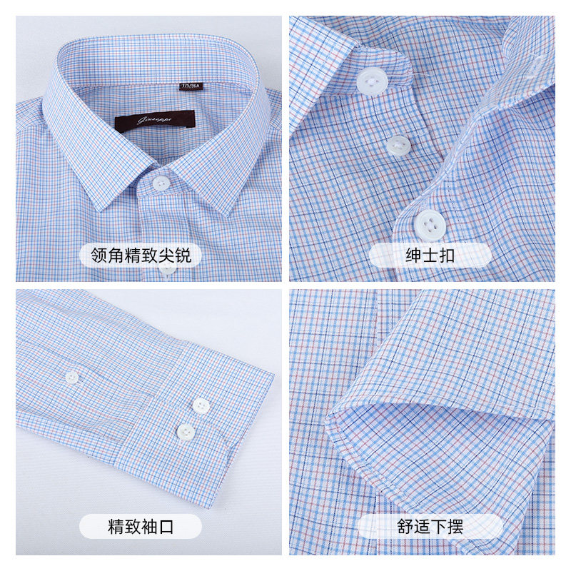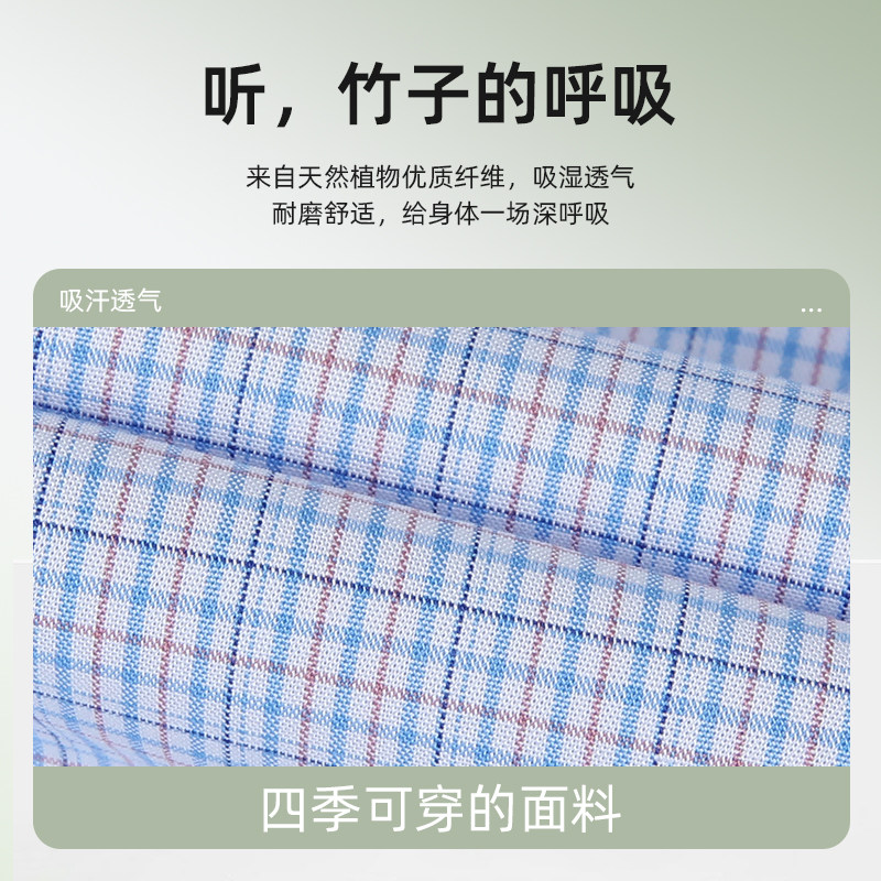 【竹纤维】乔治白春秋男士长袖衬衫尖领格子休闲衬衣直筒上衣