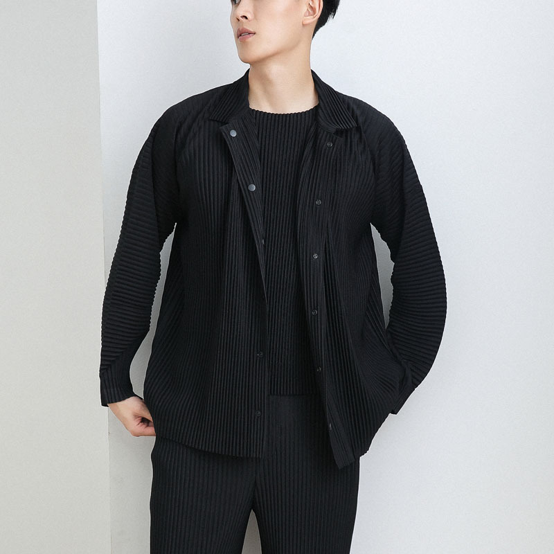 三宅衣库男装褶皱衬衫长袖外套男款宽松休闲简约秋冬季青年JC109