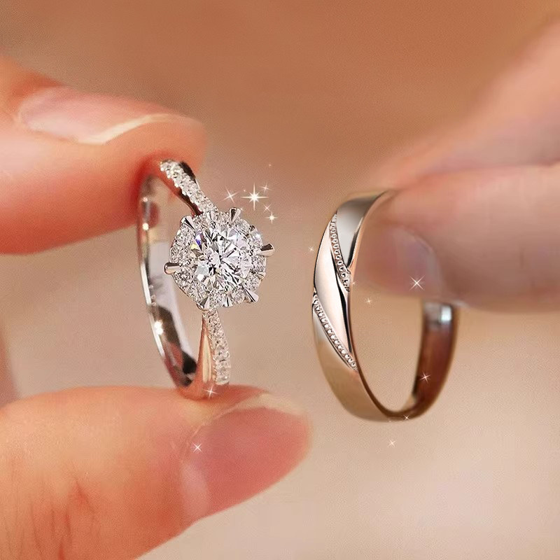 结婚戒指一对仿真莫桑钻戒求订婚礼拍照道具开口可调节交换送女友