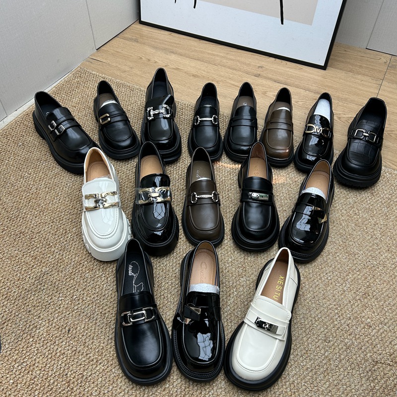 工厂处理春秋季断码真皮女鞋厚底休闲套脚圆头女单鞋松糕底乐福鞋