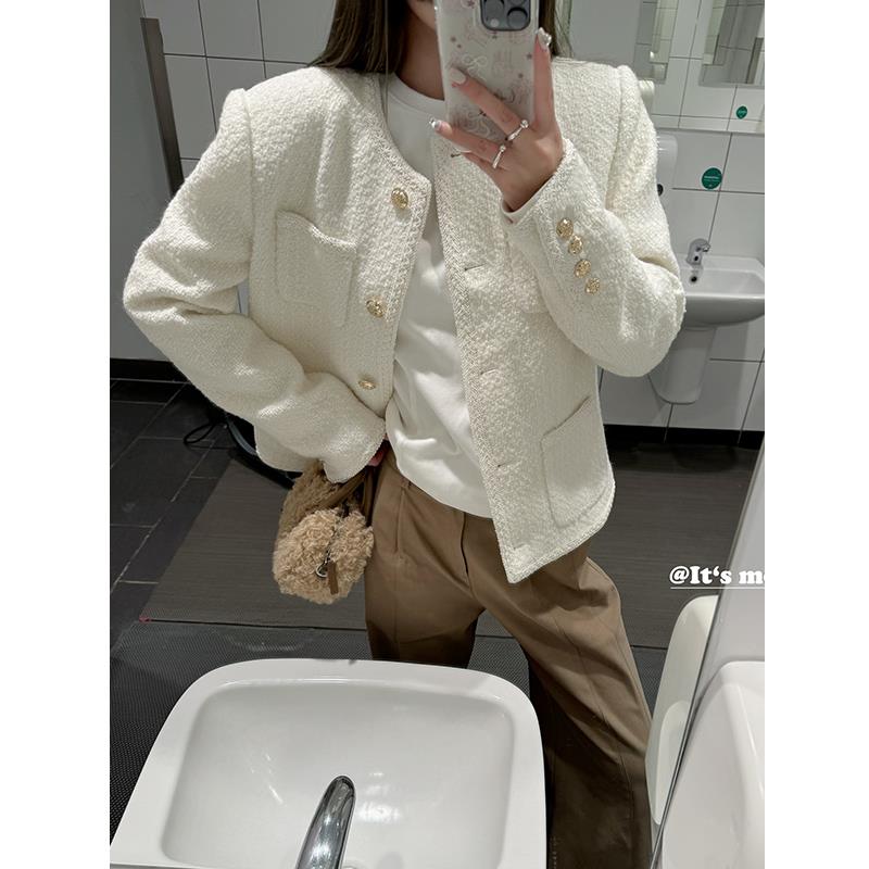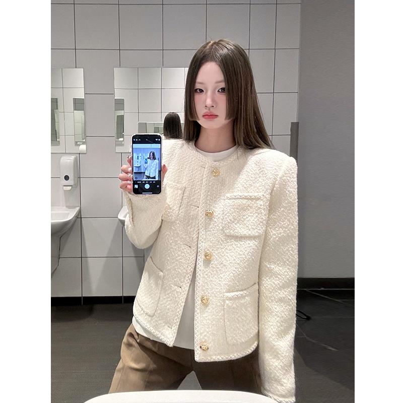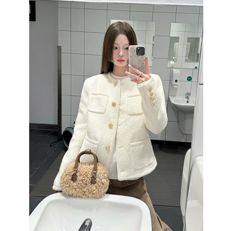 白色小香风外套女2025初秋新款休闲百搭千金风气质粗花呢短款上衣