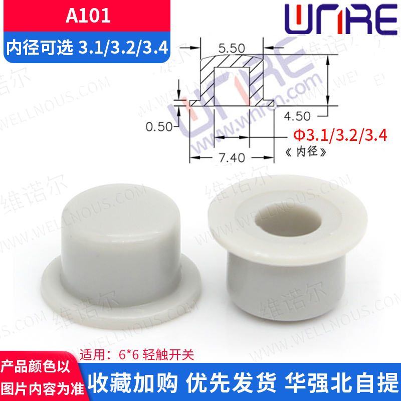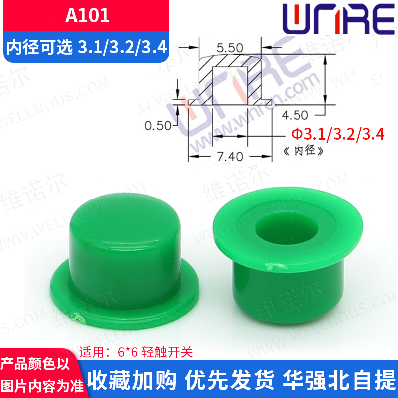 A101按键帽 内径3.1 3.2 3.4塑料按键按钮帽子7色配轻触开关6*6