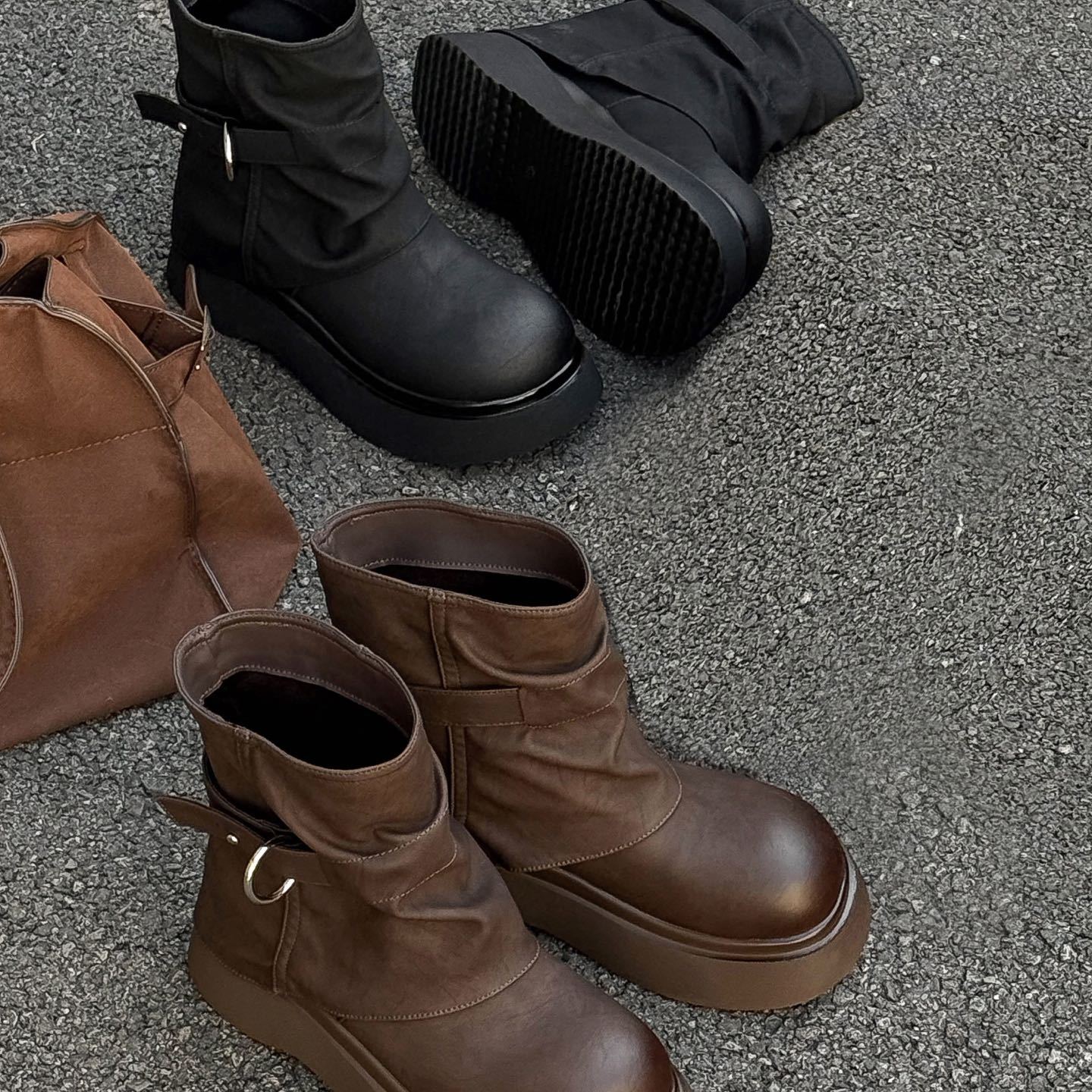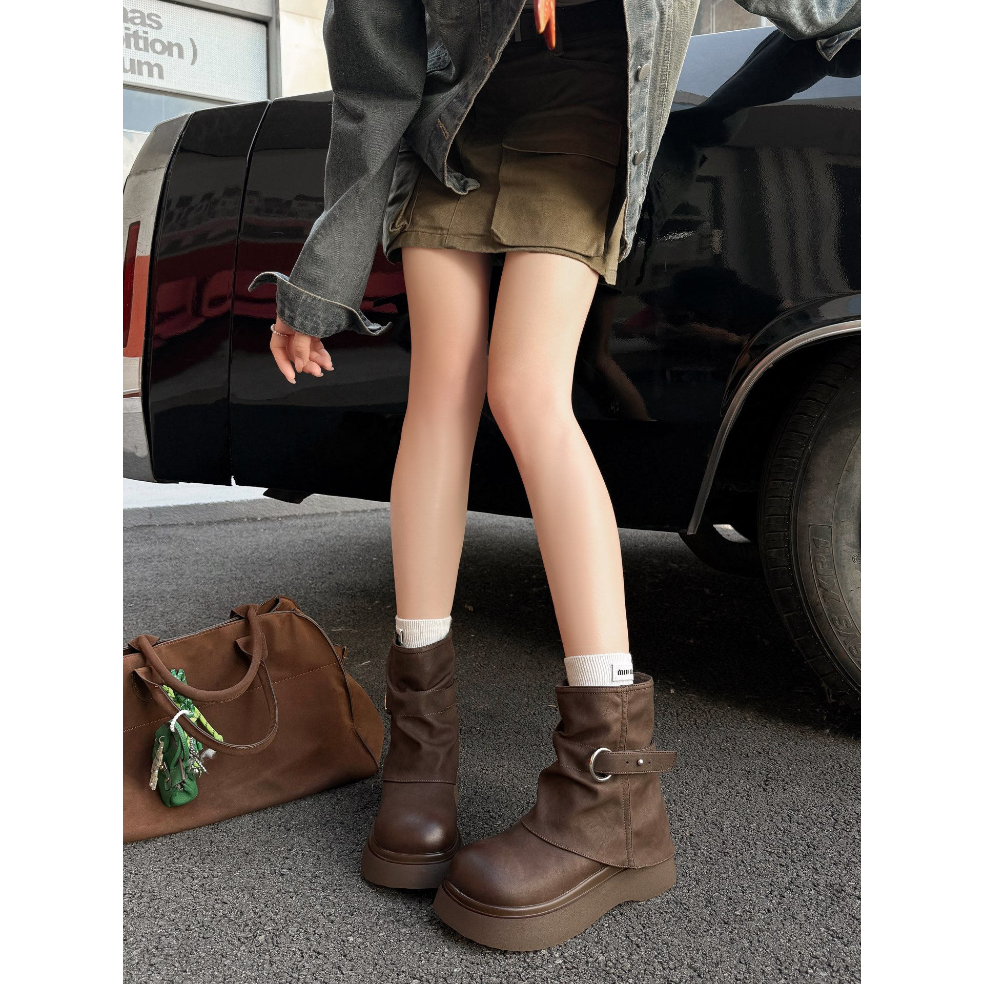 2025新款秋季推推靴美拉德骑士复古棕色马丁靴