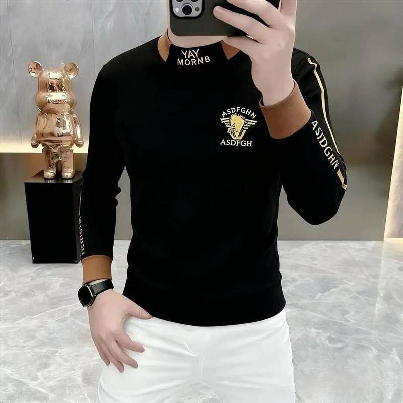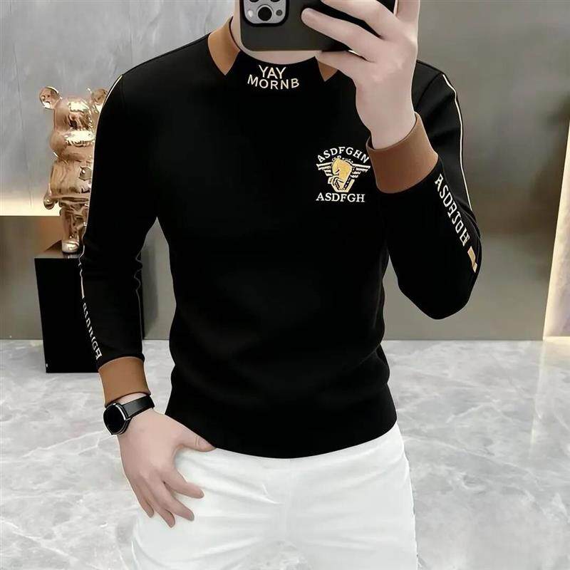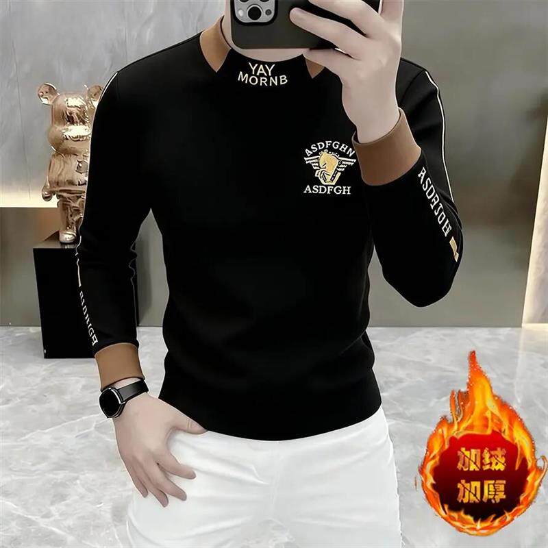 达佑轻奢迪瑟森高档秋冬加绒加厚半高领卫衣男士潮流保暖打底衫