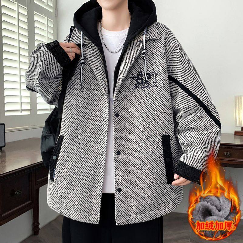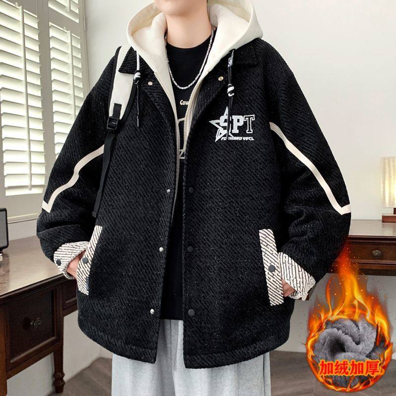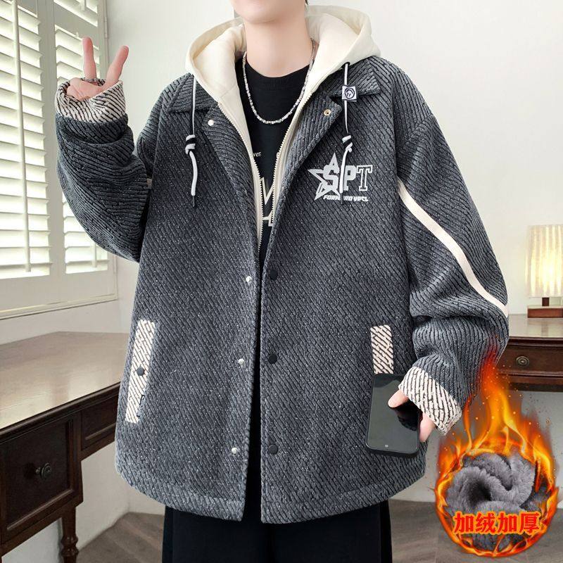 抖音爆款新款男士加绒加厚夹克外套青少年时尚帅气学生夹克上衣潮