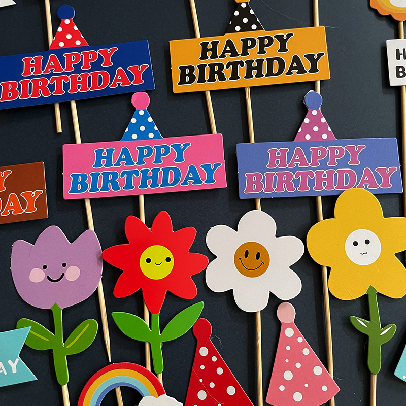 韩版网红ins笑脸小熊蜡烛横幅闪亮简约百搭创意生日蛋糕装饰插件