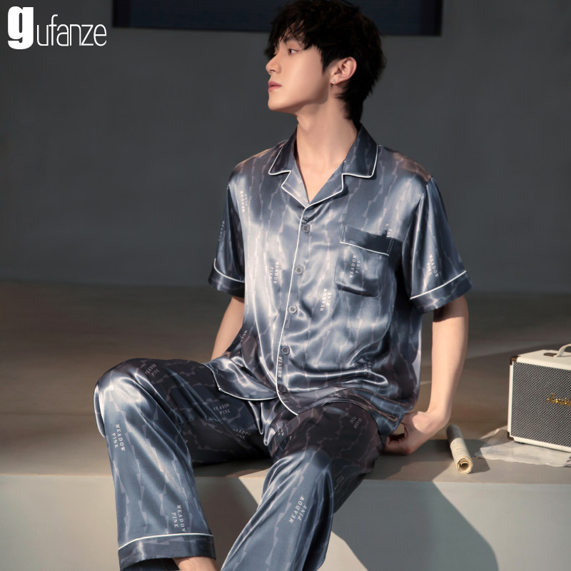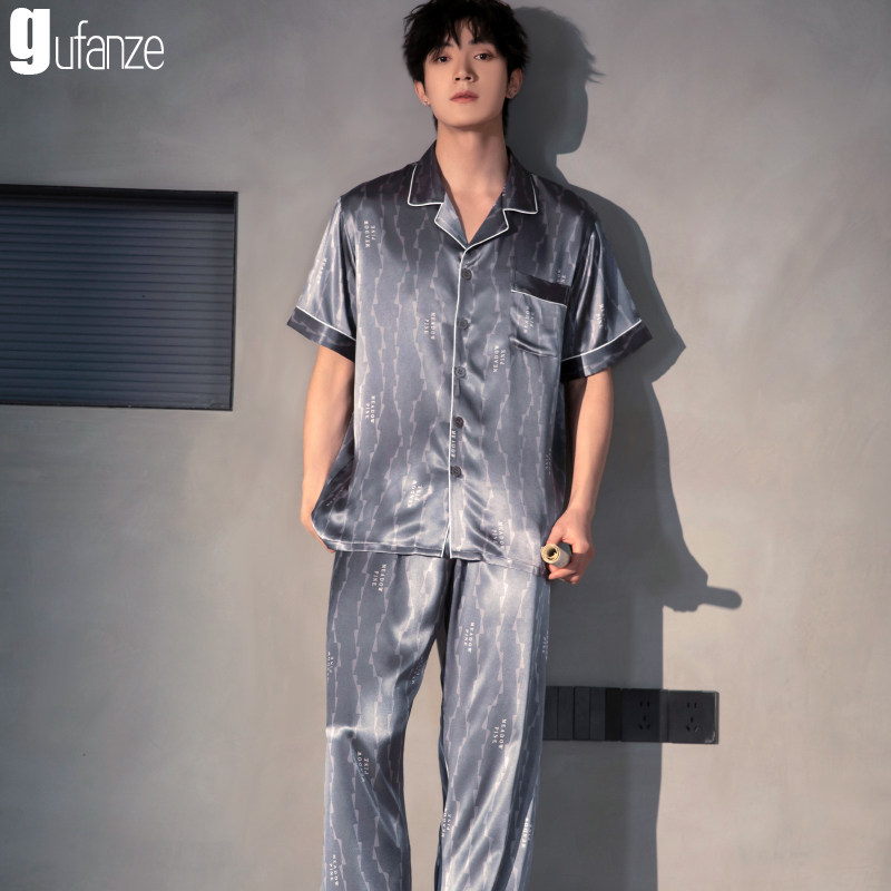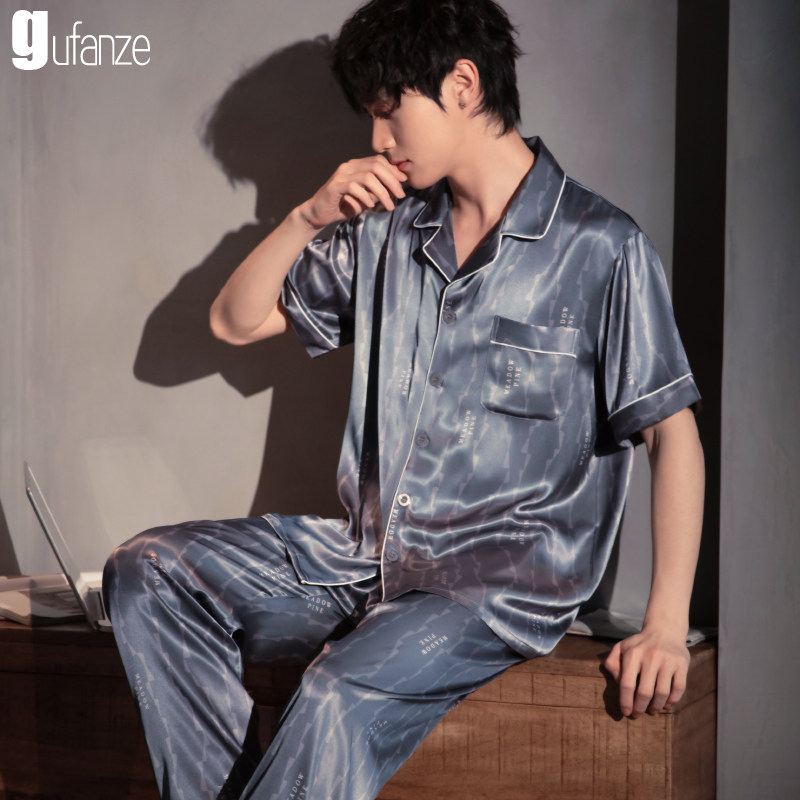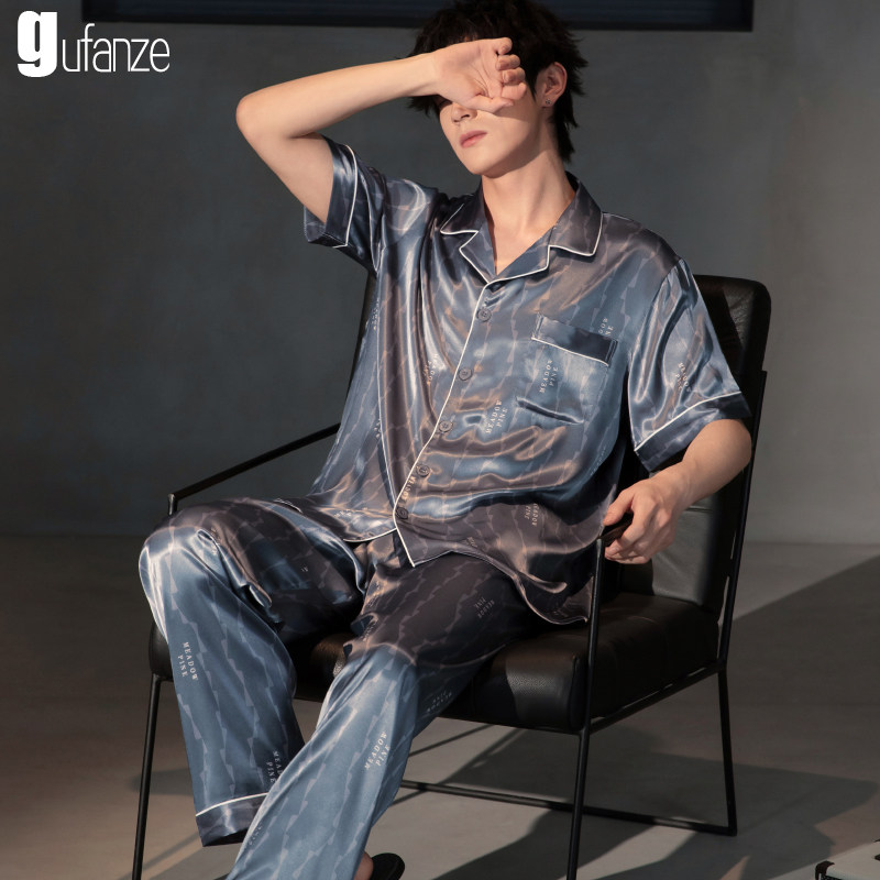 睡衣男士春夏季夏天短袖丝绸冰丝家居服春秋款薄款仿真丝绸缎套装