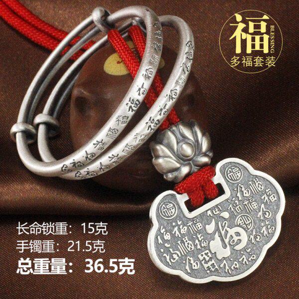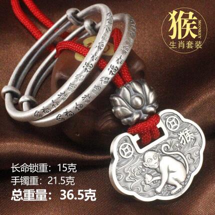 满月百牛银饰仿古礼盒生婴儿刻字肖宝宝长命锁银镯子现货法岁实心