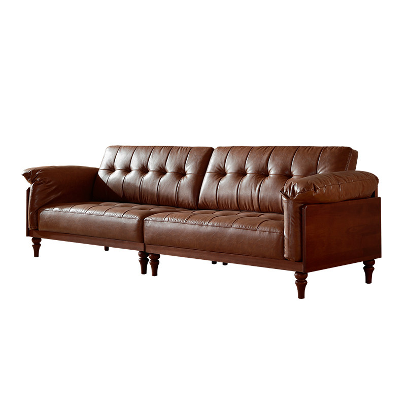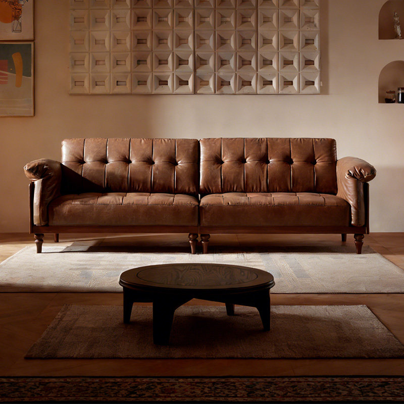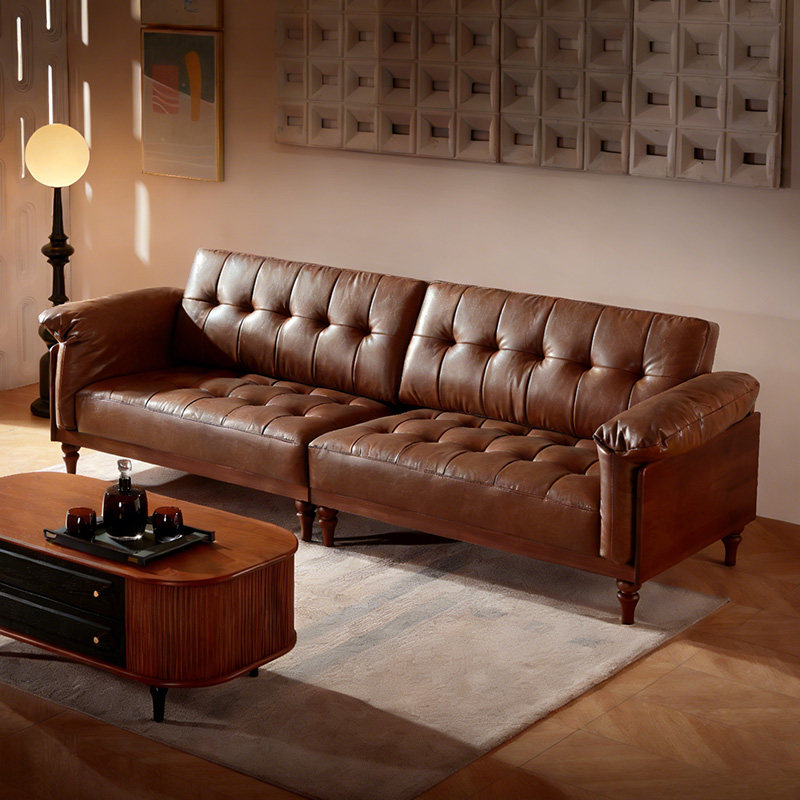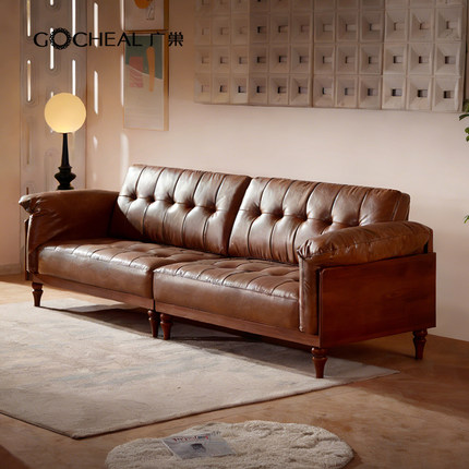 广巢维罗纳复古真皮沙发客厅小户型直排三人位中古风棕色皮艺沙发