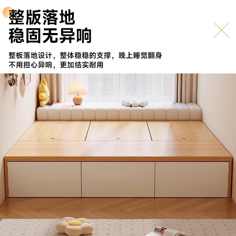 实木榻榻米床简约双人无床头储物收纳床1.2/35/8小户型定制单人床