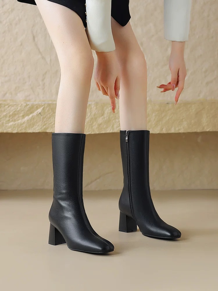 2025女靴长靴法式时尚秋冬新款百搭黑色休闲轻便时装绝美软皮洋气