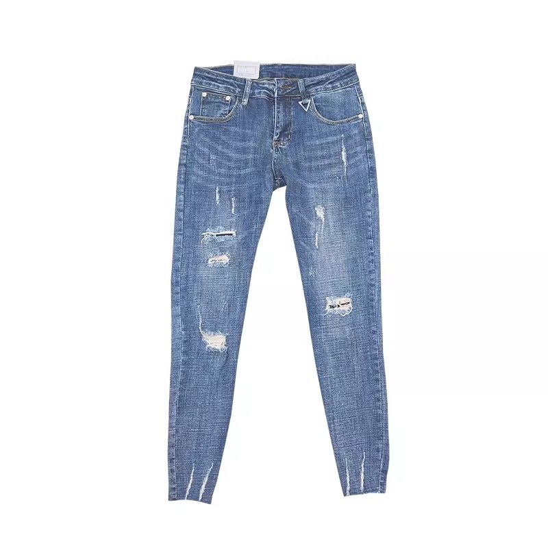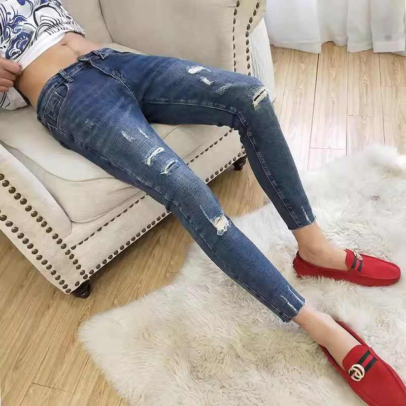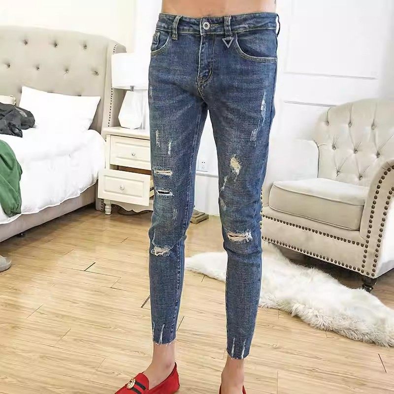 社会精神小伙修身小脚破洞九分牛仔裤男秋季新款网红韩版潮流紧身