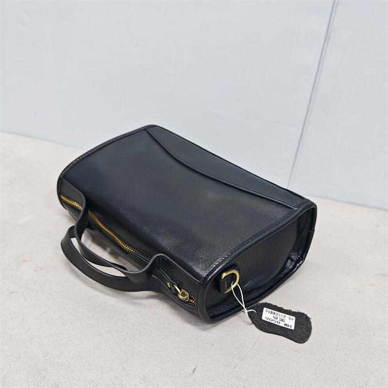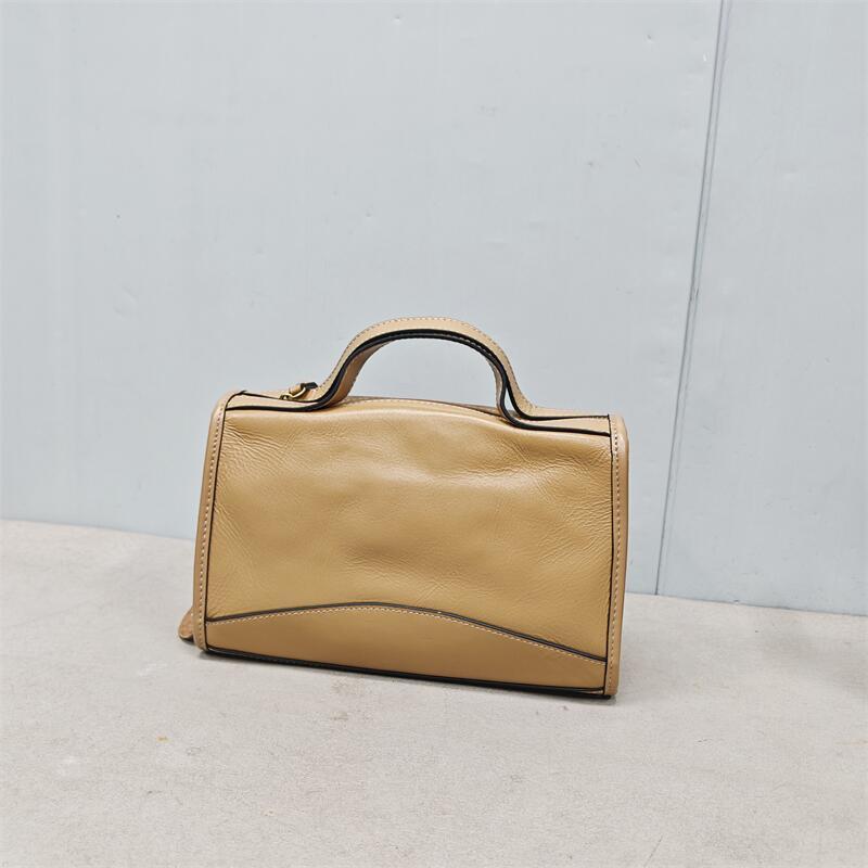 头层植鞣树膏牛皮复古波士顿真皮斜挎包包2025春夏新款枕头女士包